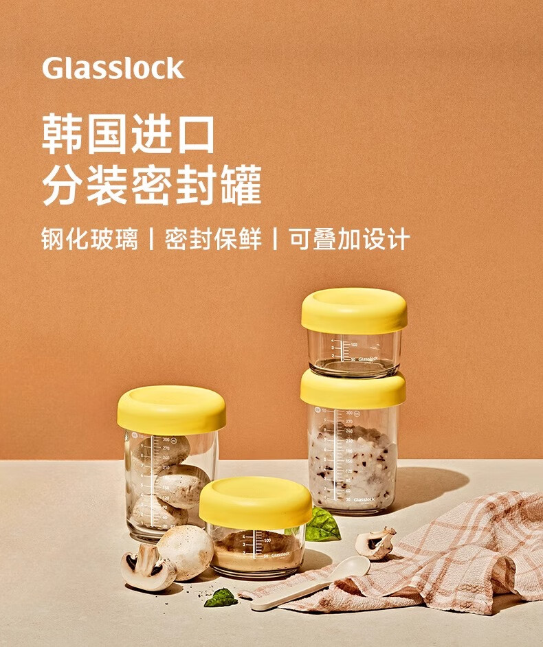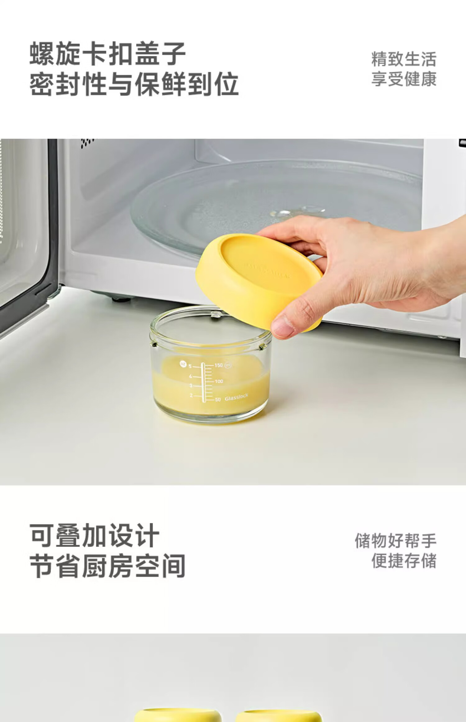 厨具  > 厨房储物  > 密封罐  >  GLASSLOCK  >  Glasslock密封罐带刻度家用进口分装猪油罐密封储物罐耐高温保鲜罐360ml GL3680/个