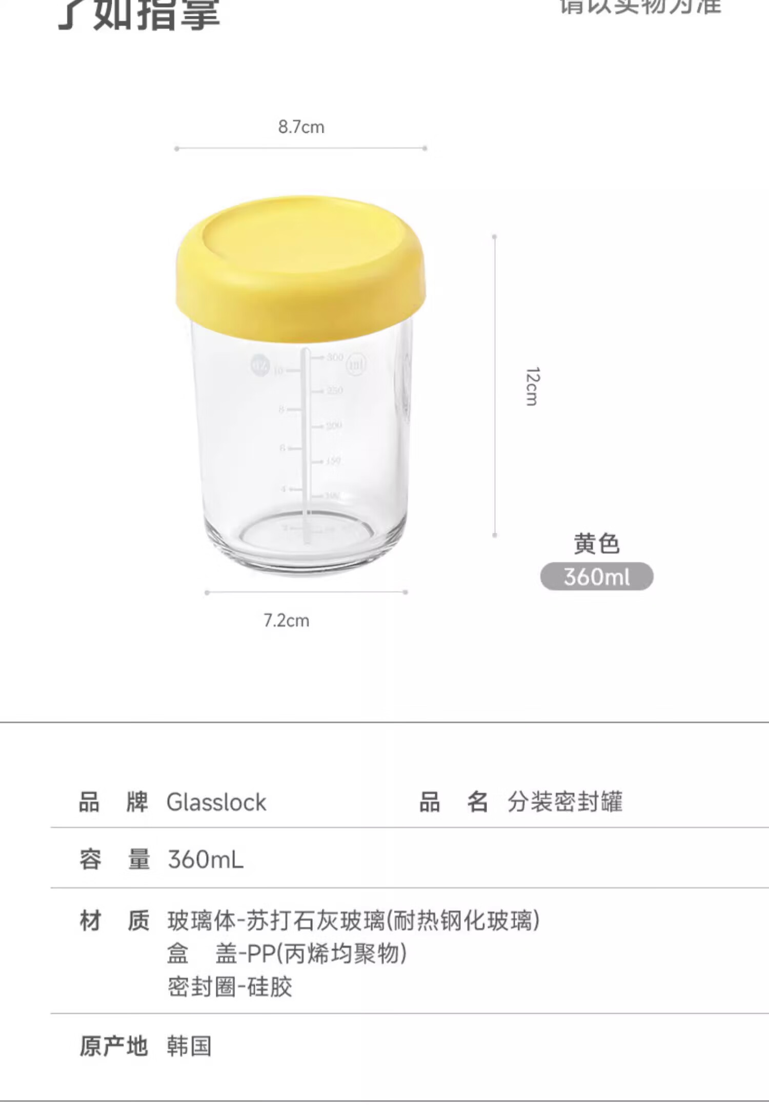 • 商品名称:Glasslock密封罐带刻度家用进口分装猪油罐密封储物罐耐高温保鲜罐360ml GL3680/个
