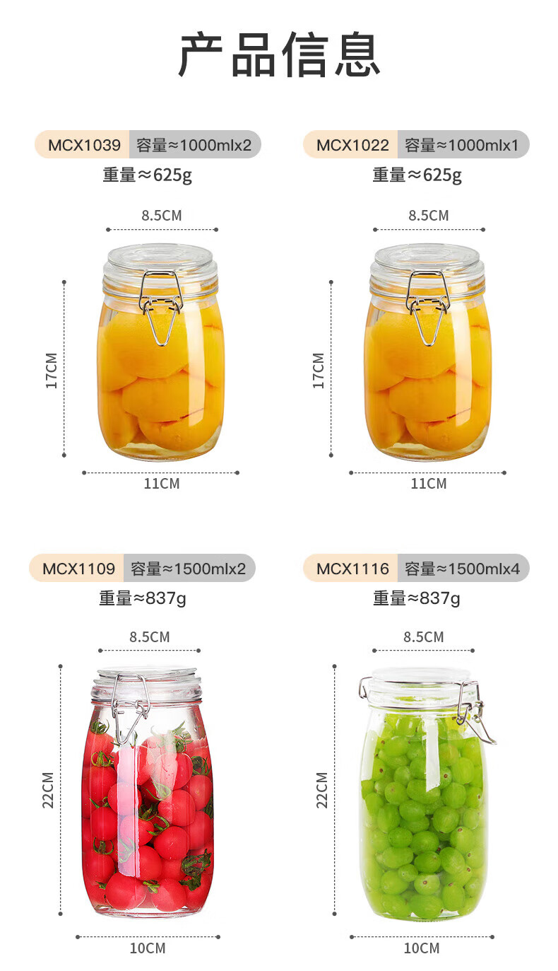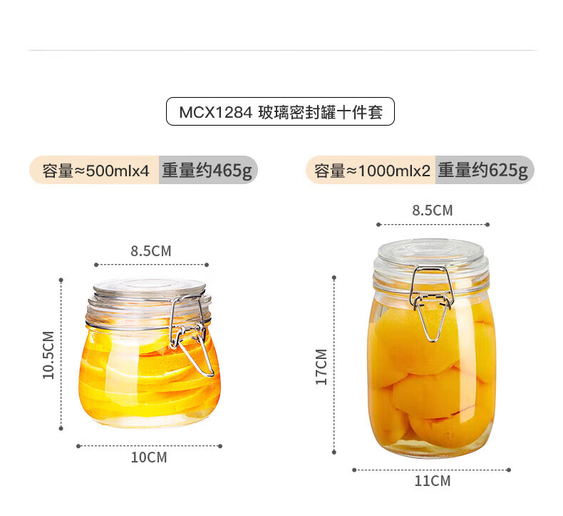 商品名称: 美厨(maxcook)玻璃密封罐 储物瓶泡酒瓶玻璃瓶子泡腊八蒜 500ml 2个装MCX1015 玻璃密封罐/个