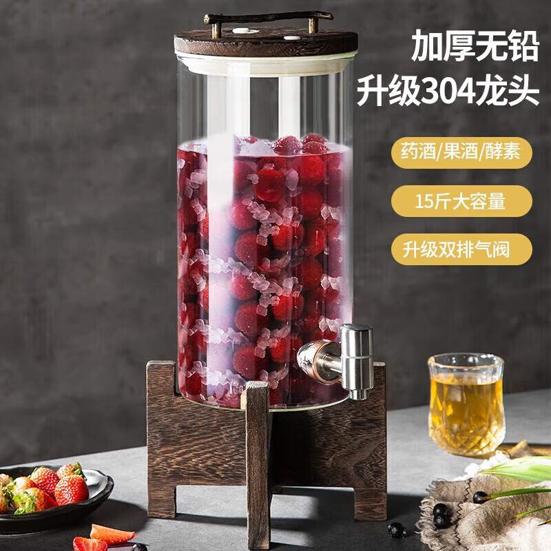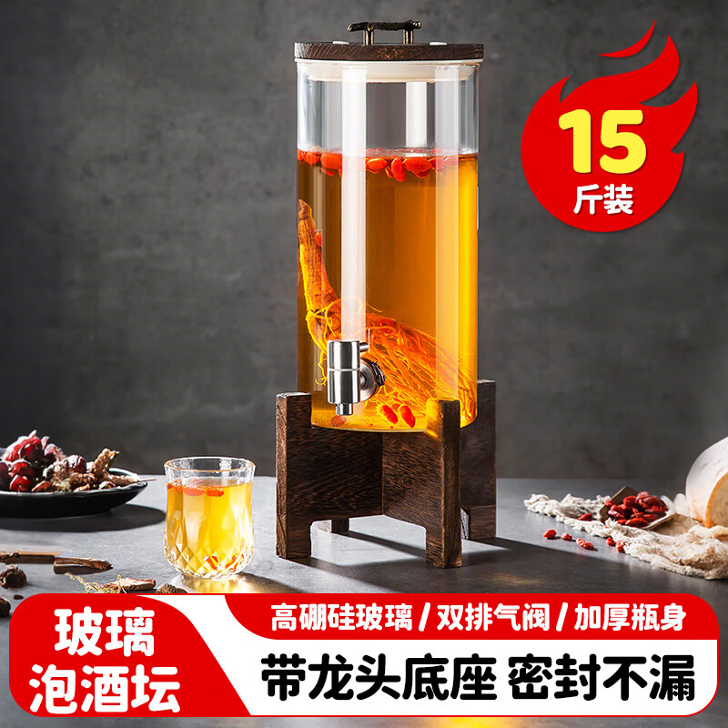 厨具  > 厨房储物  > 泡酒瓶  >  美厨/maxcook  >  美厨(maxcook)泡酒瓶泡酒坛 酿酒密封药酒罐高硼硅玻璃酒桶带底座15斤装MCX7119 泡酒瓶泡酒坛/个