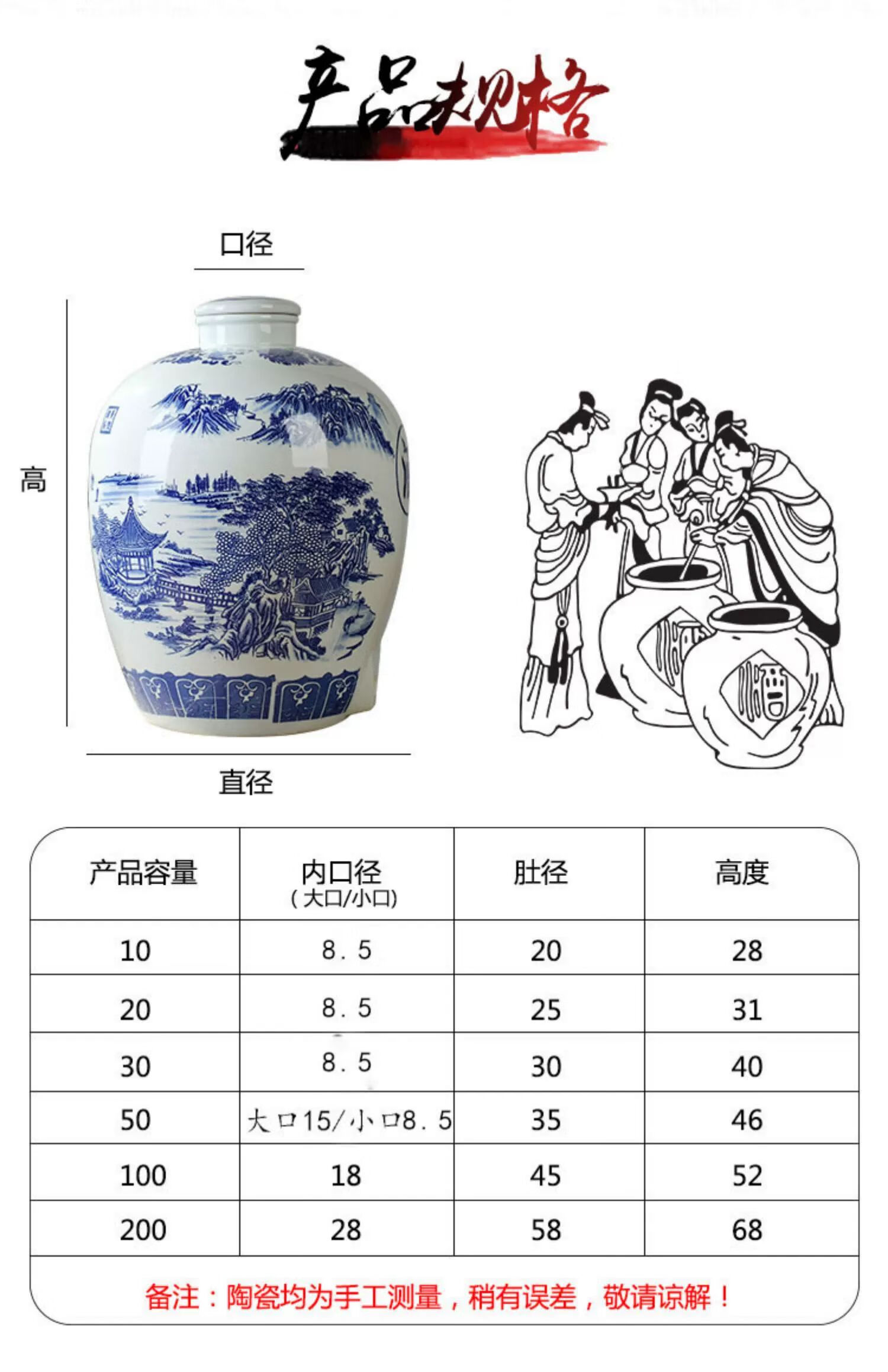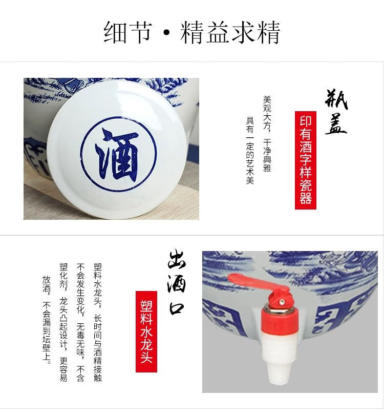 • 商品名称:轩坤派景德镇陶瓷酒坛酒罐10斤20斤30斤50斤装长期存酒专用酒瓶泡 10八仙无孔(不送酒提)/个