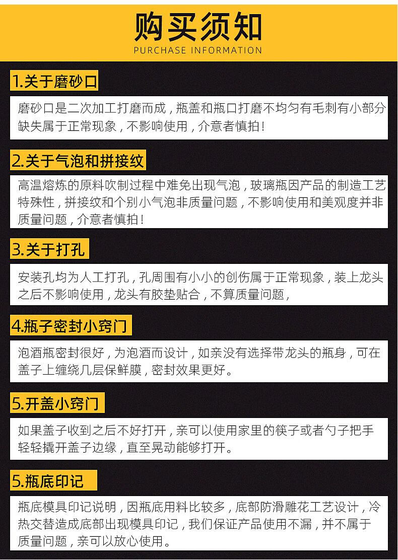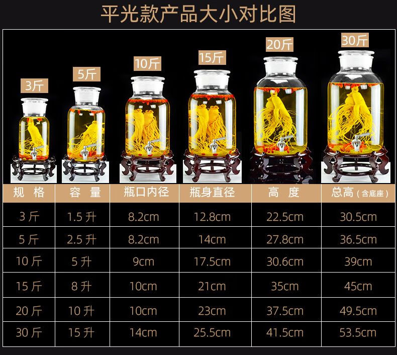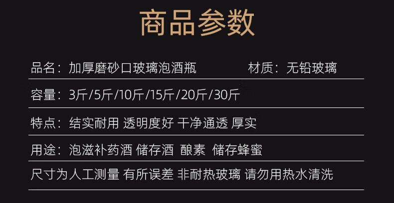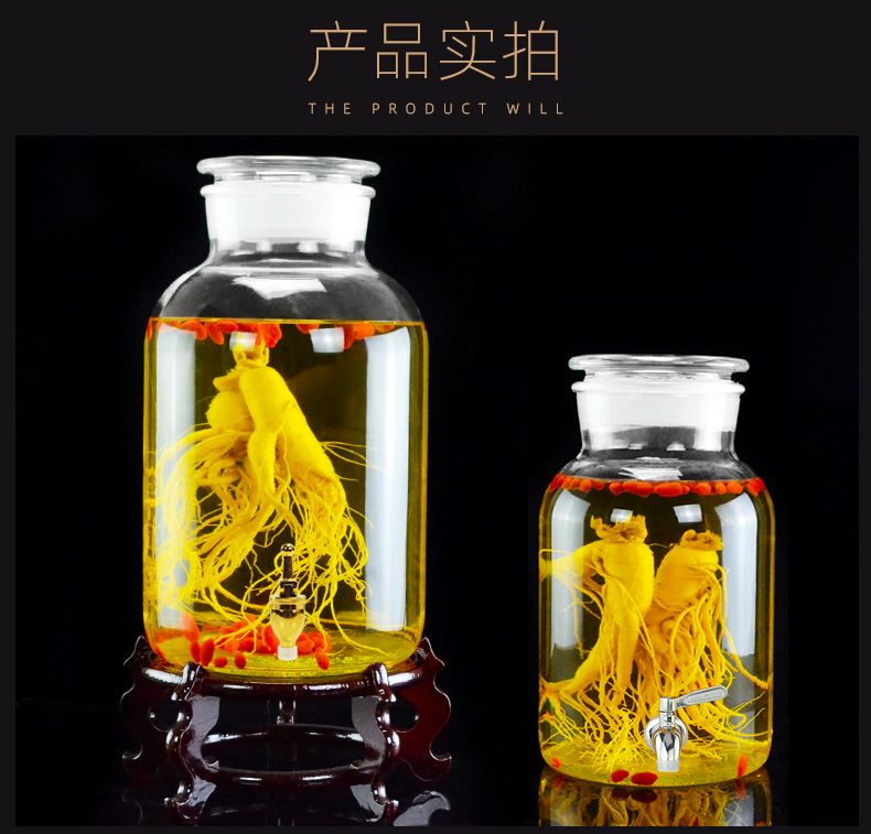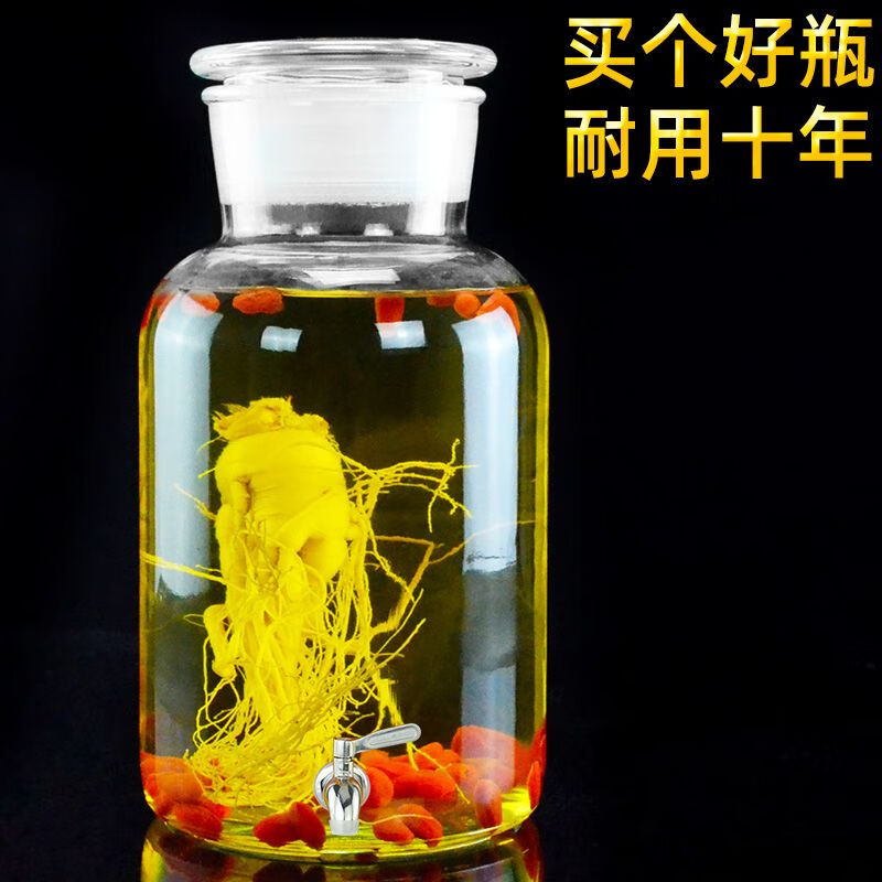 • 商品名称:尼尔欣泡酒玻璃瓶带龙头3斤5斤10斤20密封泡酒罐家用酒坛子专用酒 10斤 单瓶 送酒提/个