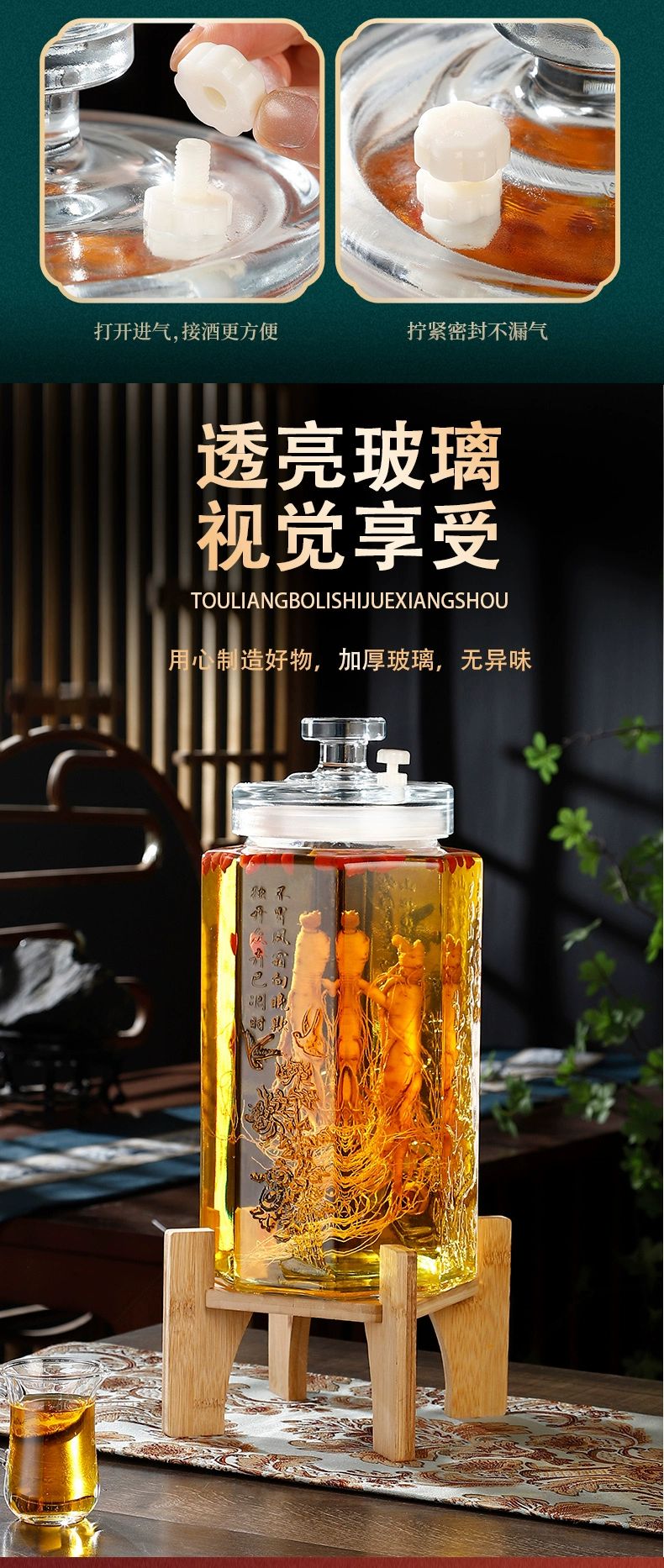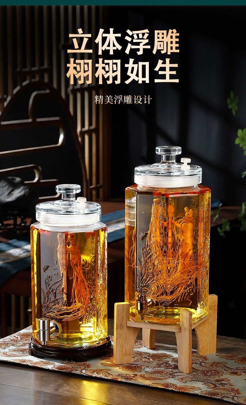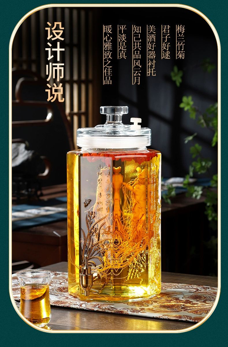 • 商品名称:靓厅泡酒玻璃瓶容器存酒人参药酒罐酒坛子酒桶10斤20带龙头专用酒 5斤裸瓶/个