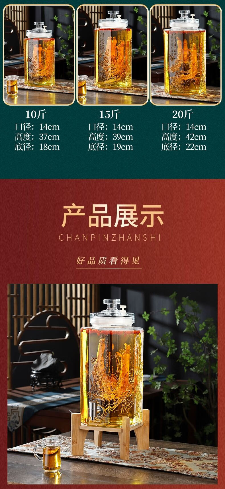商品名称: 靓厅泡酒玻璃瓶容器存酒人参药酒罐酒坛子酒桶10斤20带龙头专用酒 5斤裸瓶/个