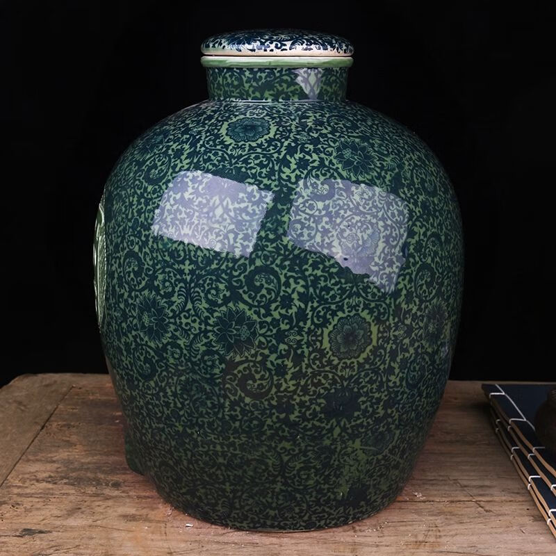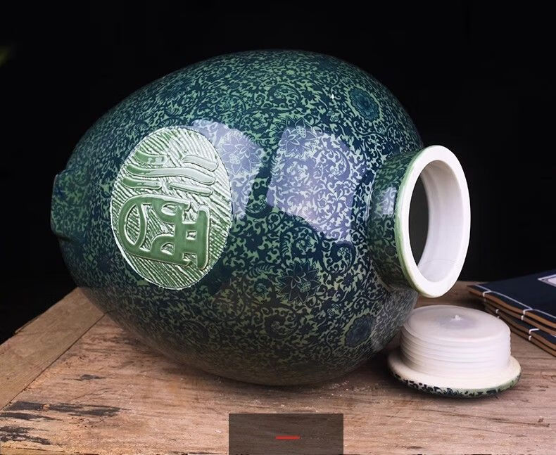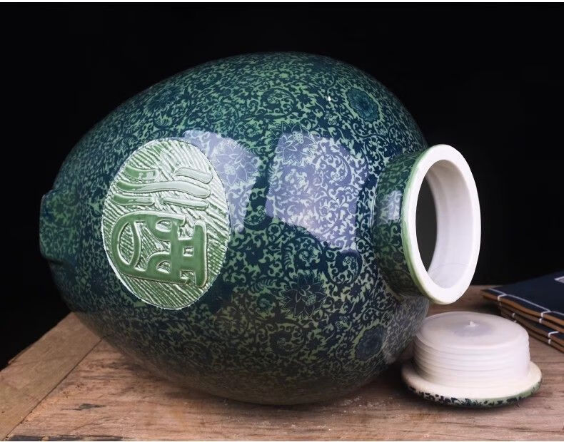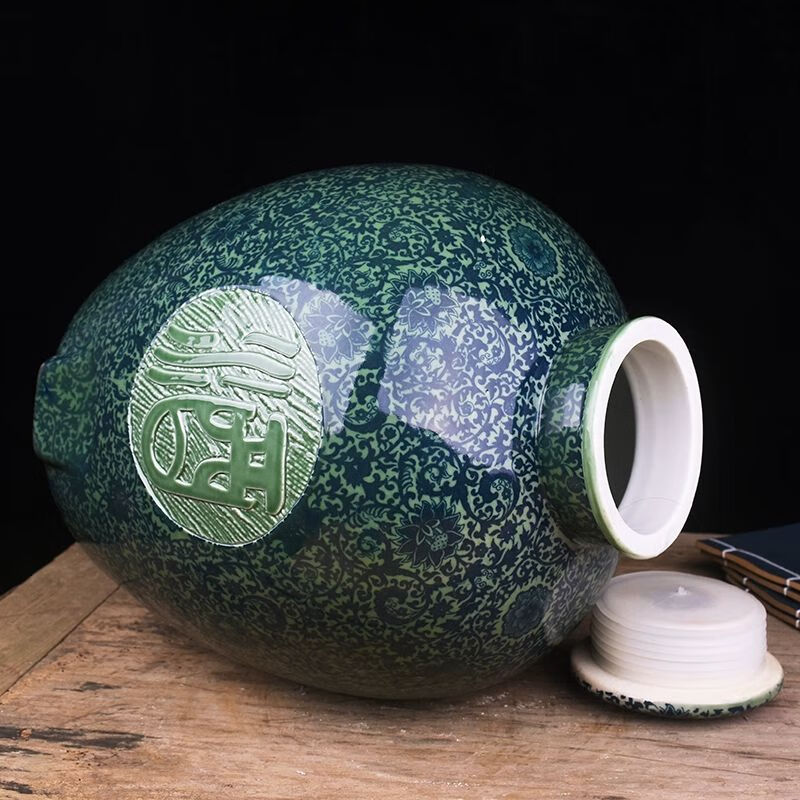 商品名称: 尼尔欣景德镇陶瓷家用酒坛青花瓷10斤酒壶高档20斤酒瓶子密封50斤 20斤蓝色品酒无龙头(带锁扣带酒提)/个