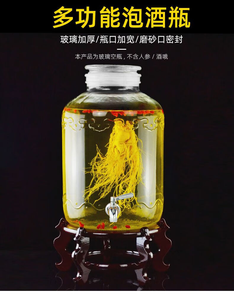 • 商品名称:尼尔欣泡酒玻璃瓶 带龙头5 10 20斤50家用磨砂口密封酒坛子加厚专 40斤+木底座 送酒提/个