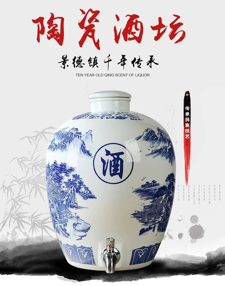 • 商品名称:轩坤派景德镇陶瓷酒坛酒罐10斤20斤30斤50斤装长期存酒专用酒瓶泡 10斤八仙不锈钢龙头(更耐用)/个
