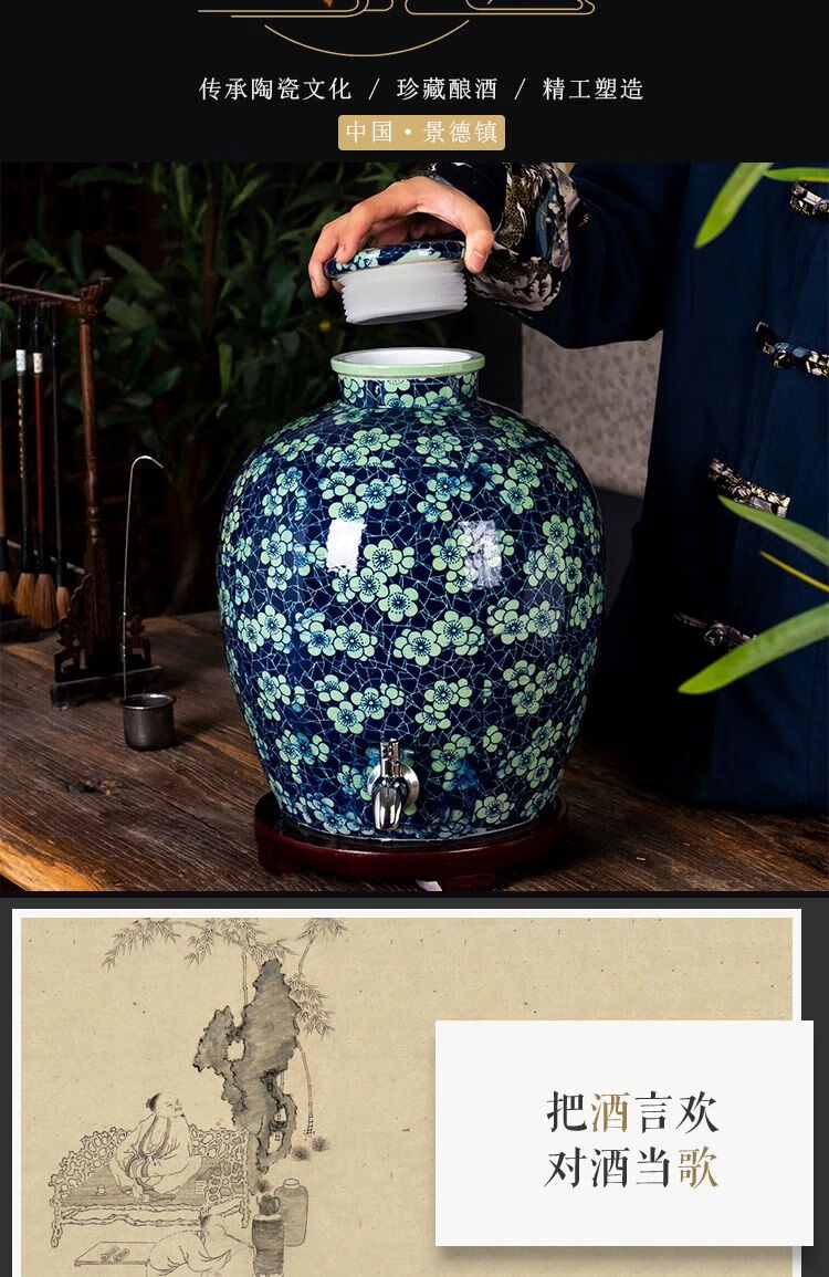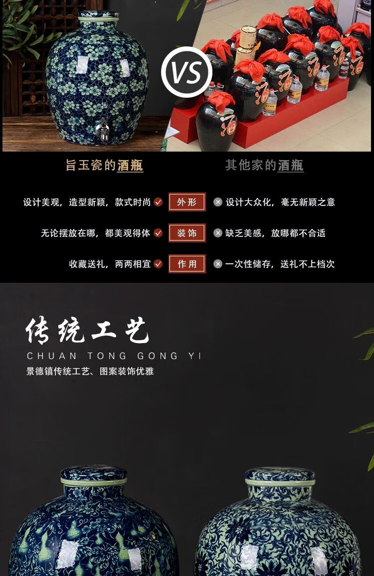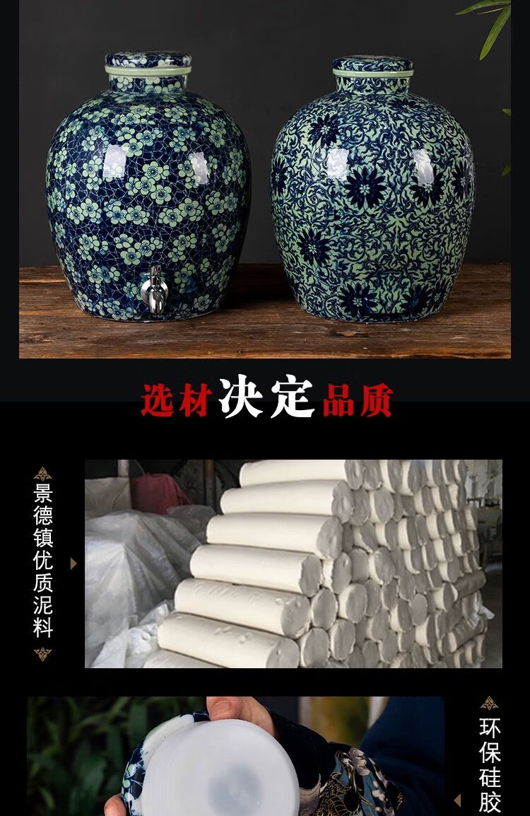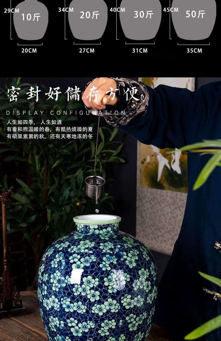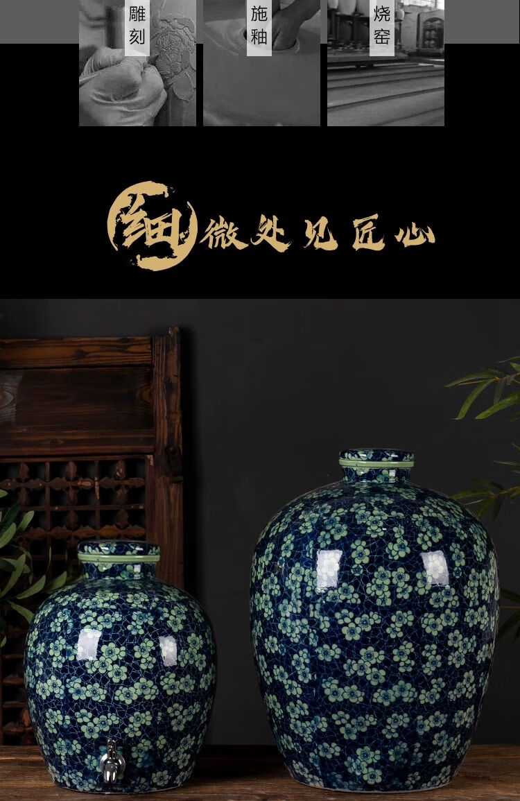 厨具  > 厨房储物  > 泡酒瓶  >  轩坤派  >  轩坤派景德镇陶瓷酒坛子家用10斤20斤30斤50斤装泡酒瓶仿古酒罐缸 50斤无孔万花雕刻酒字送底座酒提/个