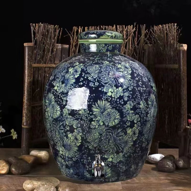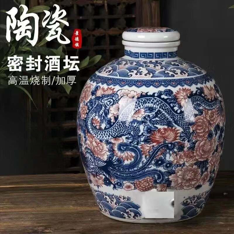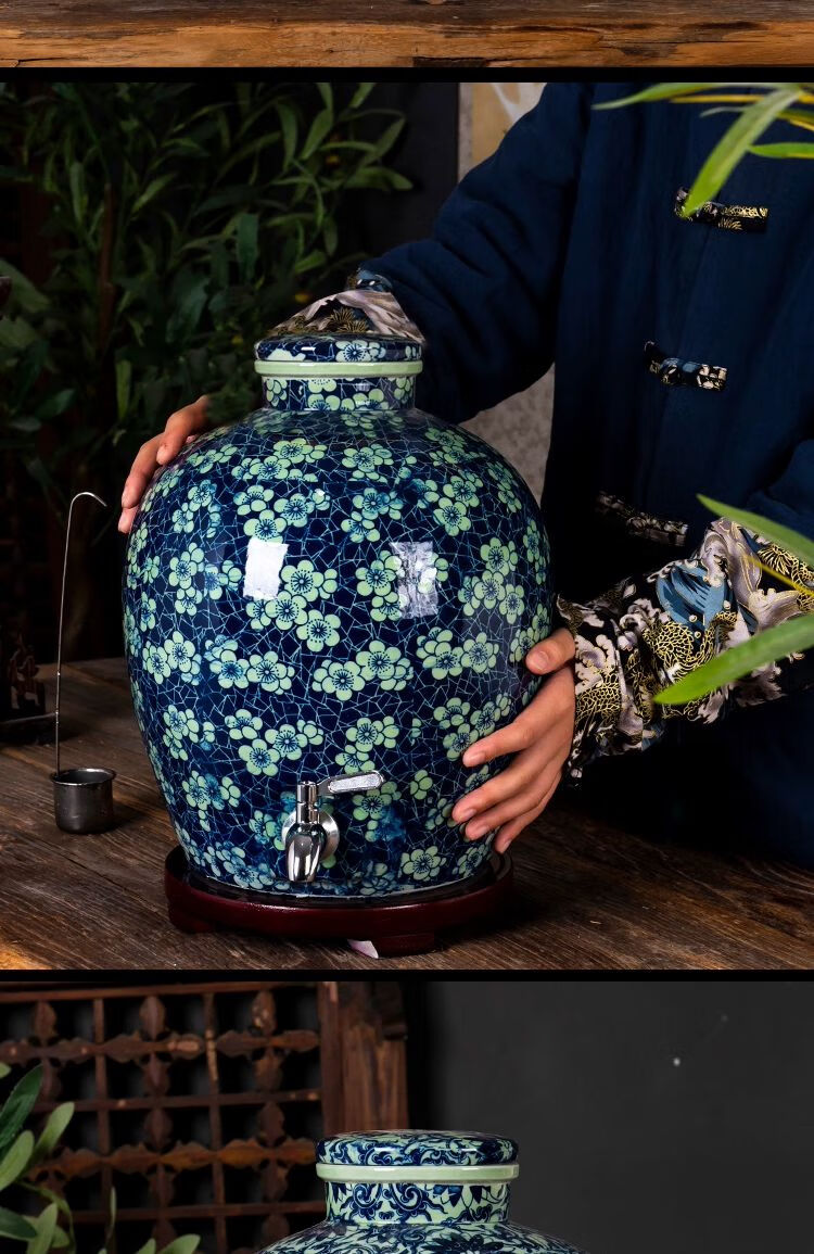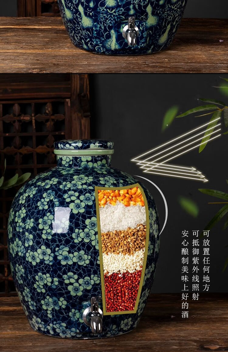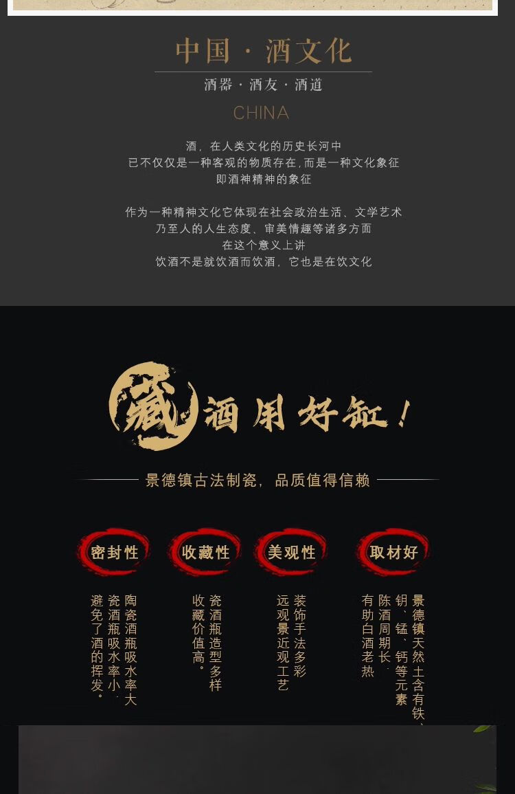 厨具  > 厨房储物  > 泡酒瓶  >  轩坤派  >  轩坤派景德镇陶瓷酒坛子家用10斤20斤30斤50斤装泡酒瓶仿古酒罐缸 50斤无孔万花雕刻酒字送底座酒提/个
