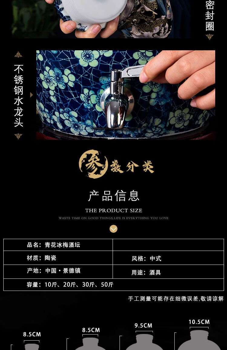 商品名称: 轩坤派景德镇陶瓷酒坛子家用10斤20斤30斤50斤装泡酒瓶仿古酒罐缸 50斤无孔万花雕刻酒字送底座酒提/个
