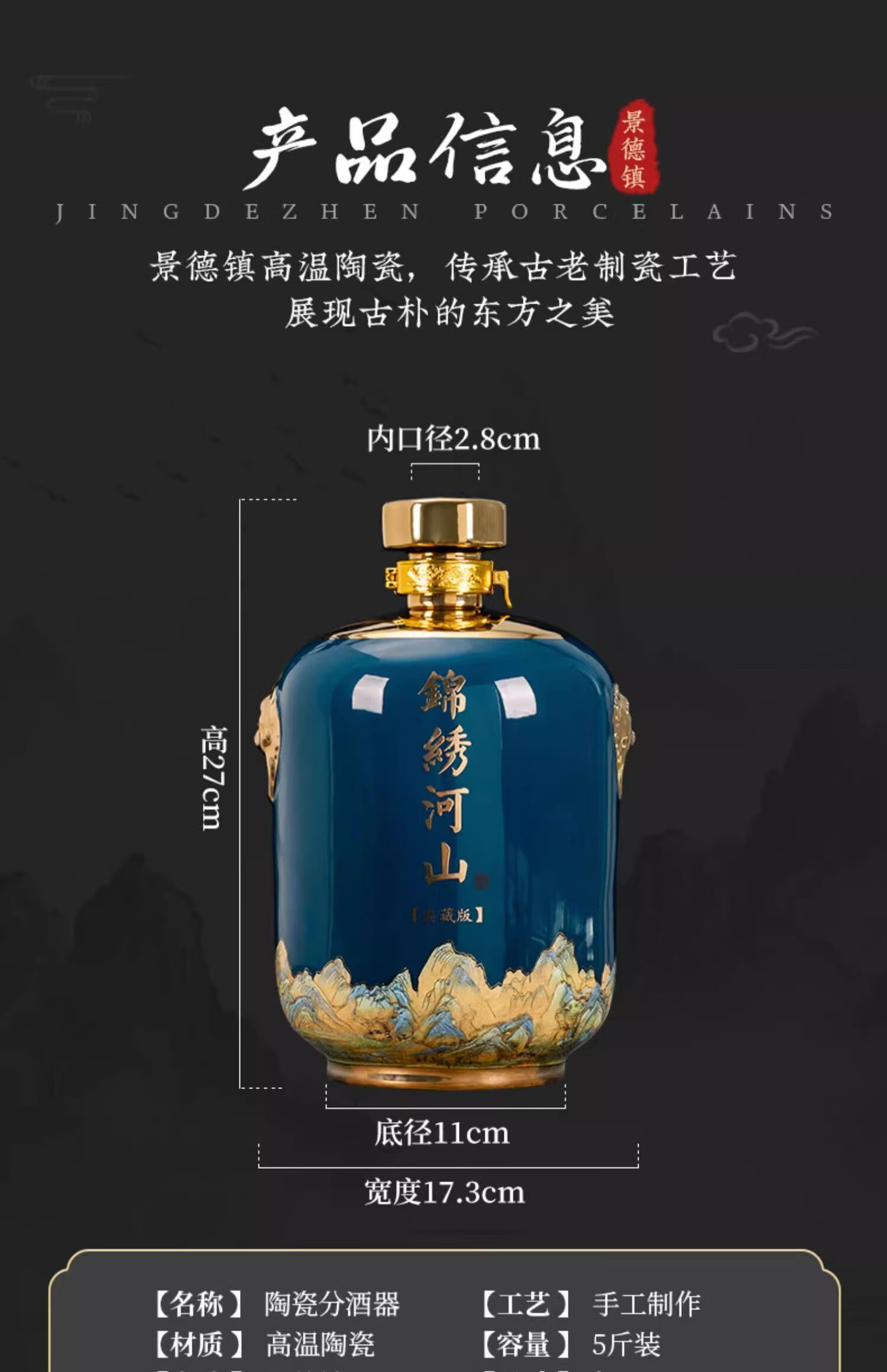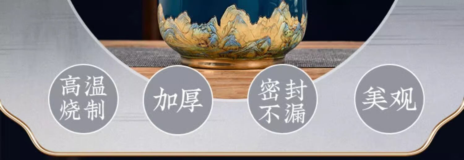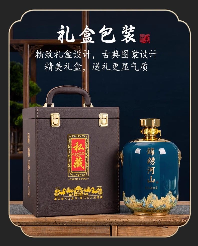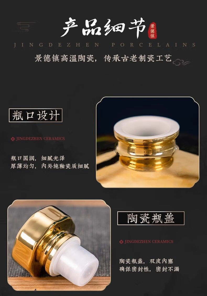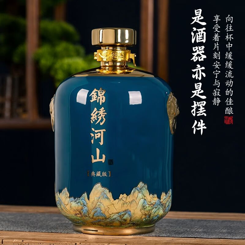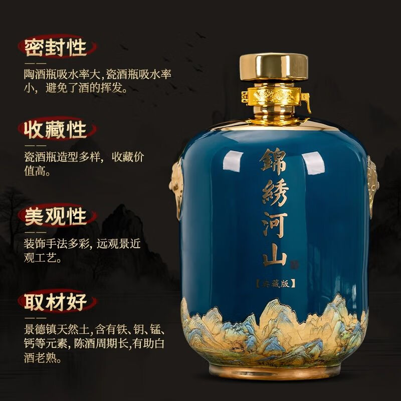 • 商品名称:尼尔欣景德镇陶瓷酒坛子5斤装白酒瓶家用密封窖藏酒壶酒瓶空瓶酒 窖藏-5斤装亮面黑带皮盒/个