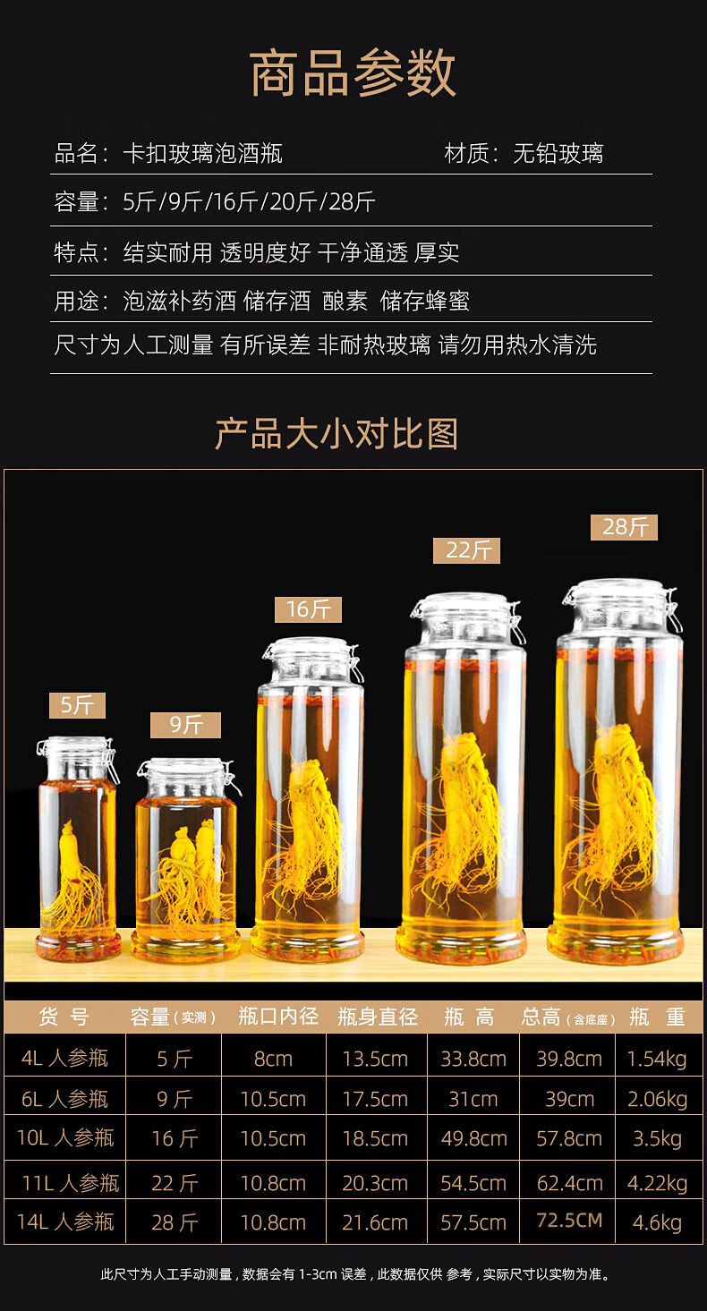 • 商品名称:尼尔欣泡酒专用酒瓶带龙头加厚酒坛酒罐密封泡酒瓶家用酿药酒玻璃 5斤(光面款) 单瓶/个