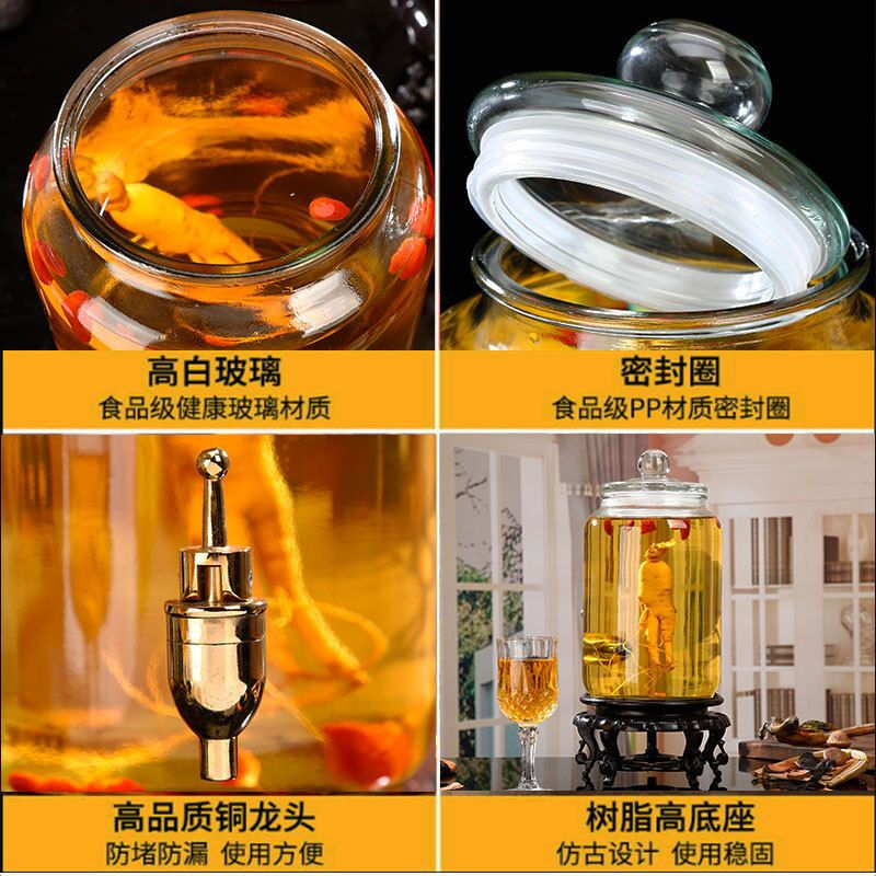 厨具  > 厨房储物  > 泡酒瓶  >  微娜  >  微娜玻璃泡酒瓶5斤10斤20斤家用泡酒瓶带龙头密封泡酒坛酿泡酒罐 圆瓶20斤+防堵不锈钢龙头/个