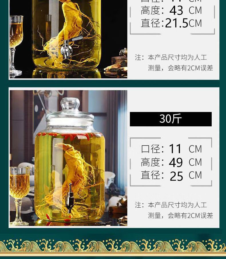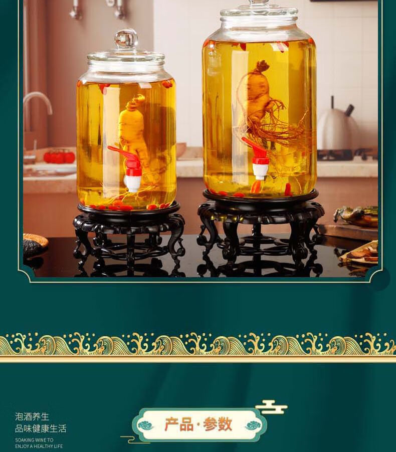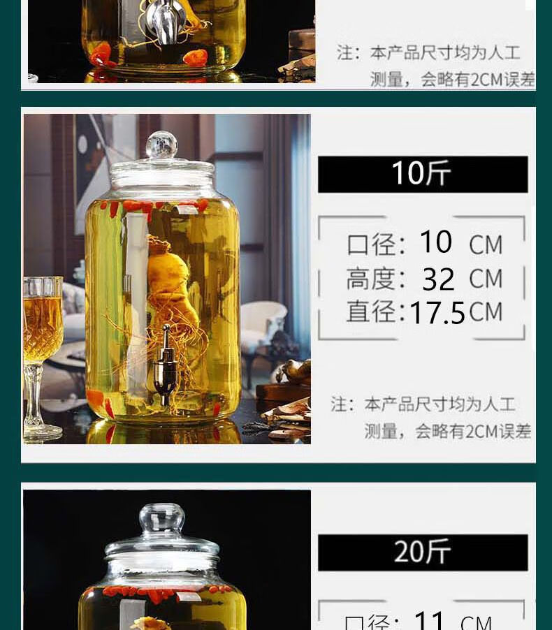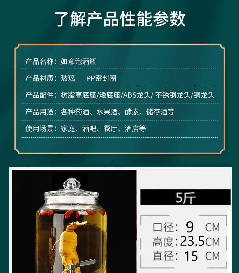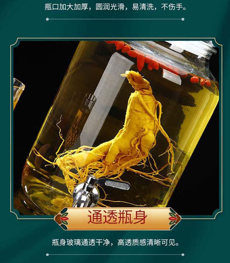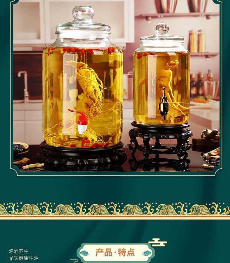• 商品名称:微娜玻璃泡酒瓶5斤10斤20斤家用泡酒瓶带龙头密封泡酒坛酿泡酒罐 圆瓶20斤+防堵不锈钢龙头/个