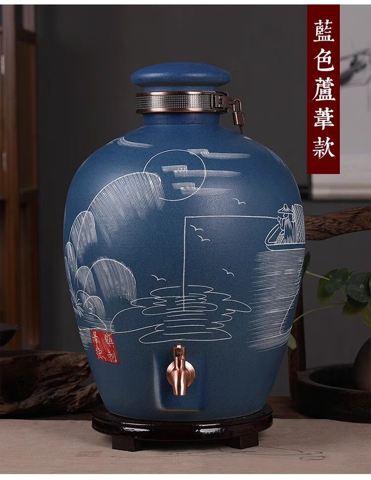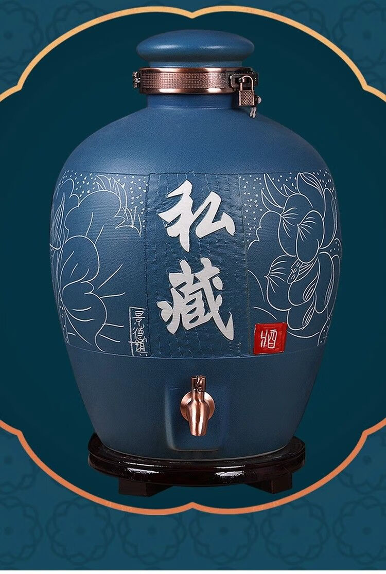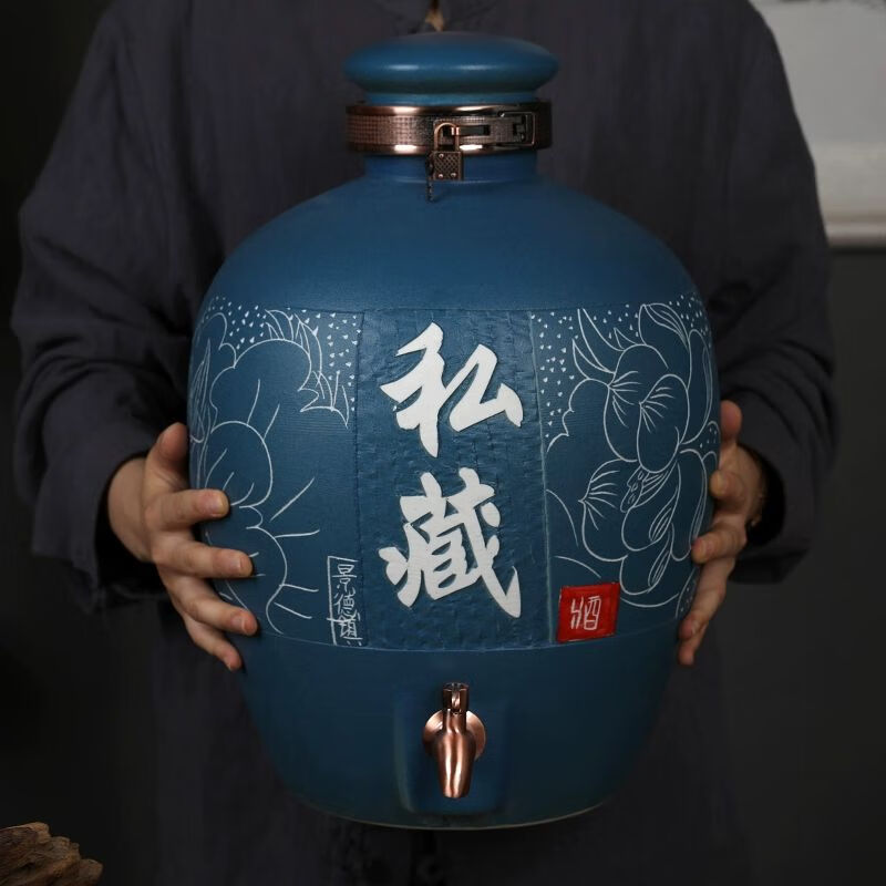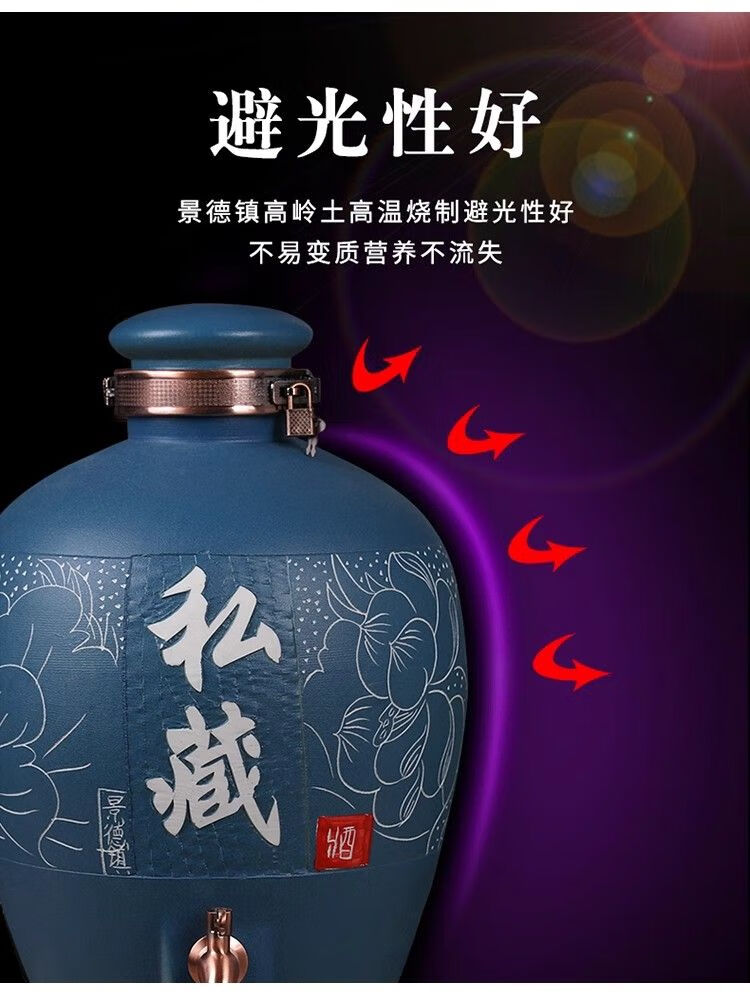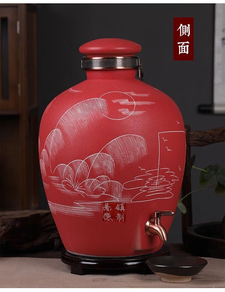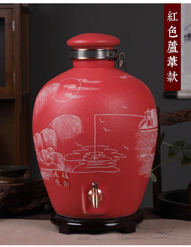 • 商品名称:微娜景德镇陶瓷酒坛10斤20斤50斤带龙头密封泡酒瓶家用存酒壶白酒 20斤红芦苇+古铜龙头/个