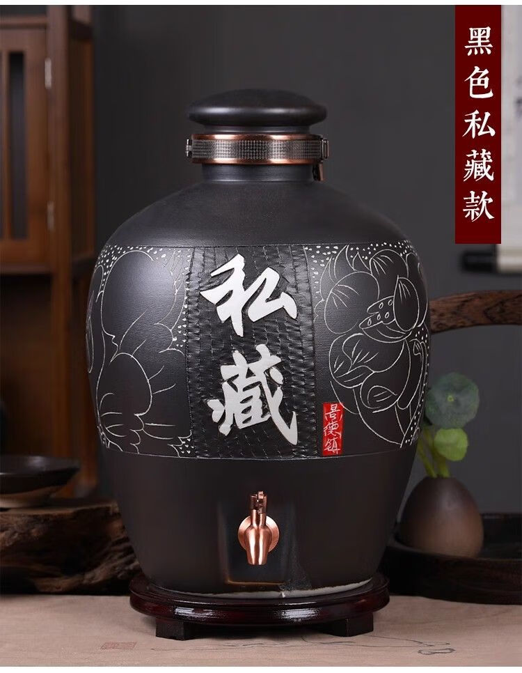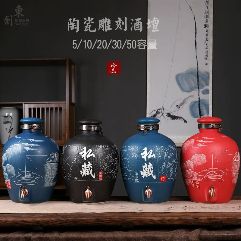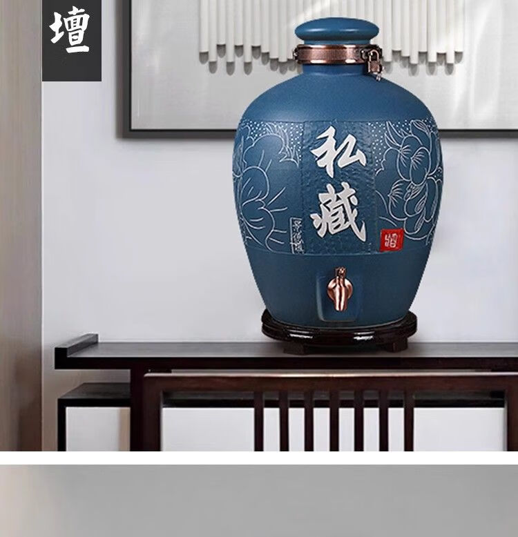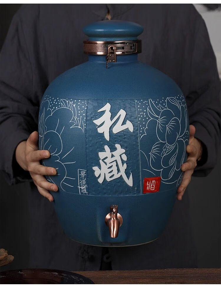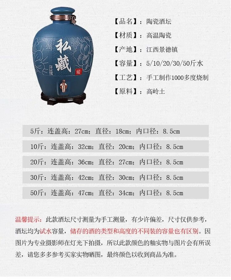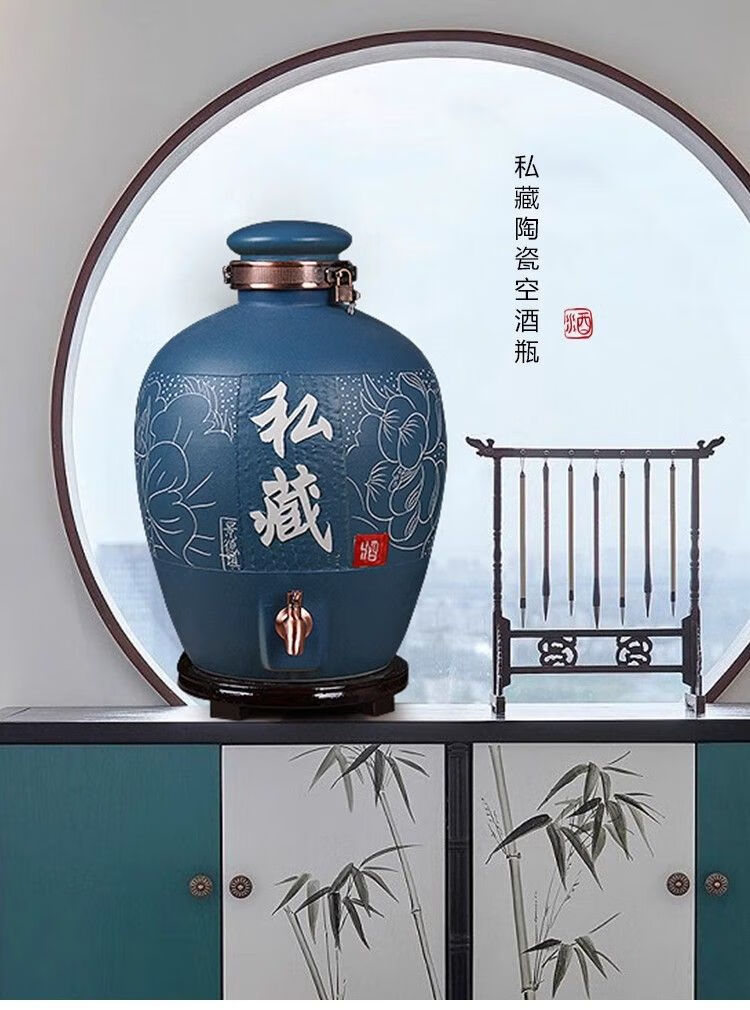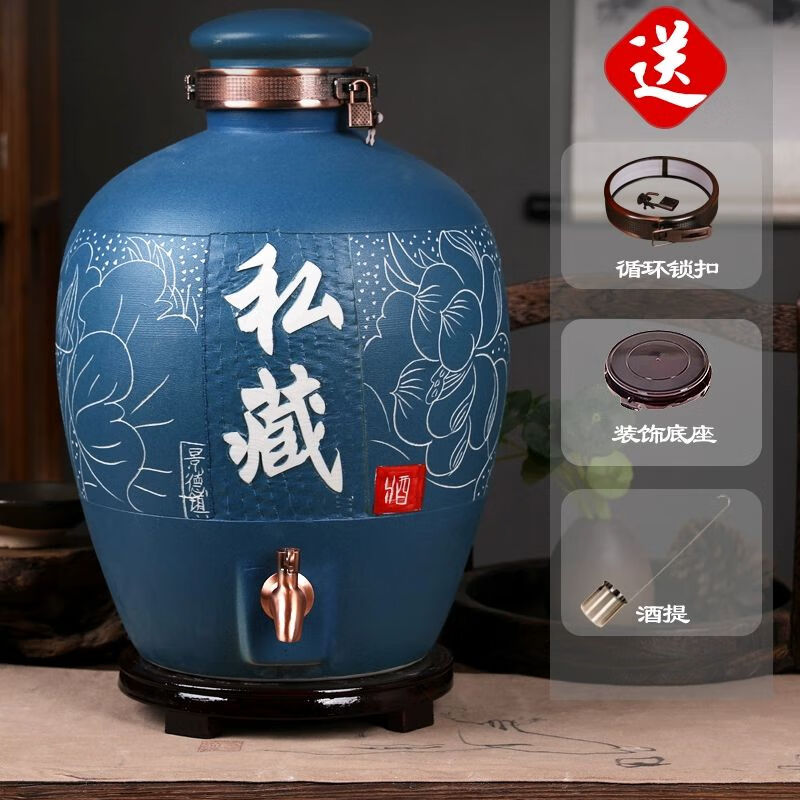 • 商品名称:微娜景德镇陶瓷酒坛10斤20斤50斤带龙头密封泡酒瓶家用存酒壶白酒 20斤红芦苇+古铜龙头/个