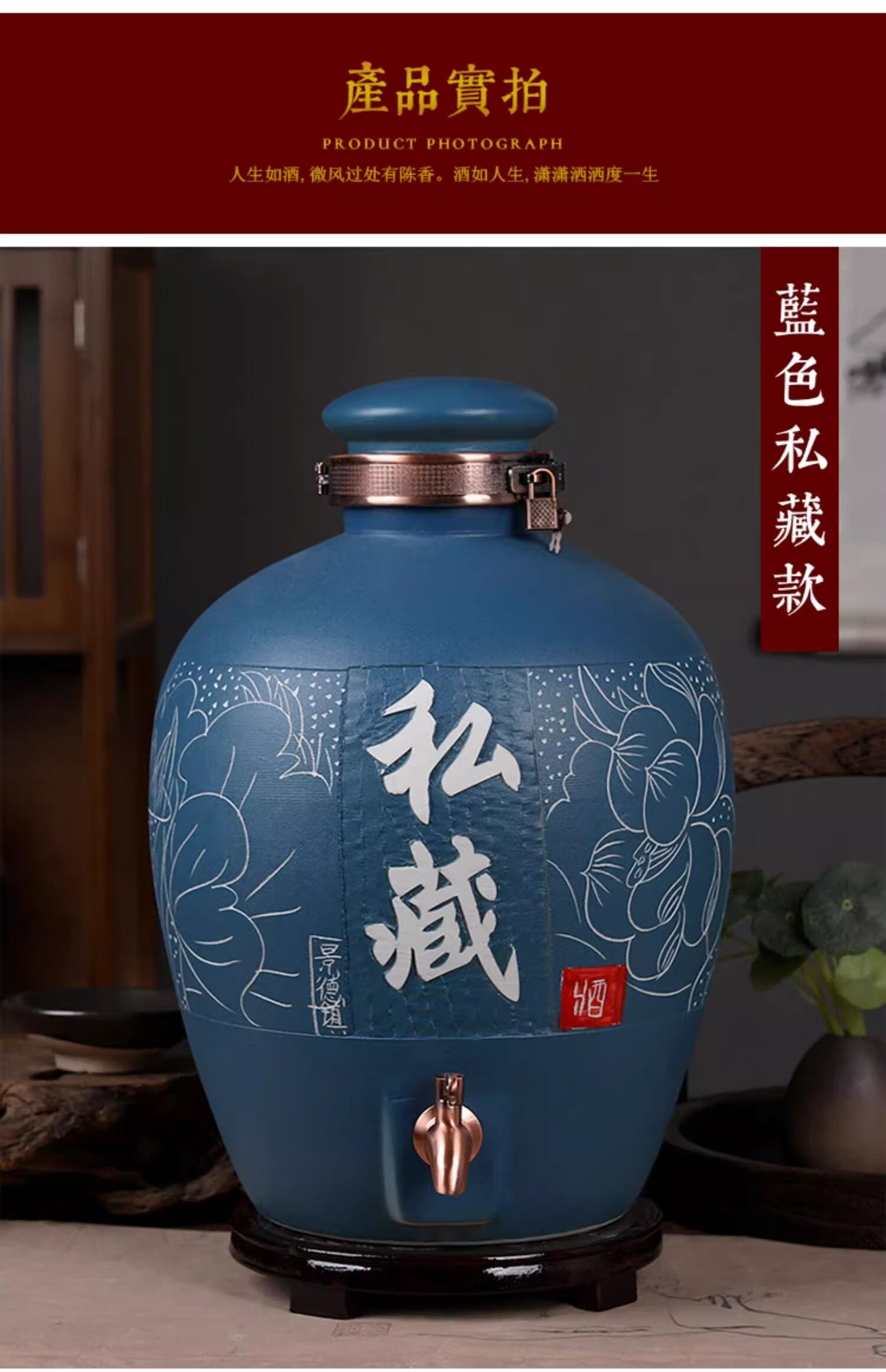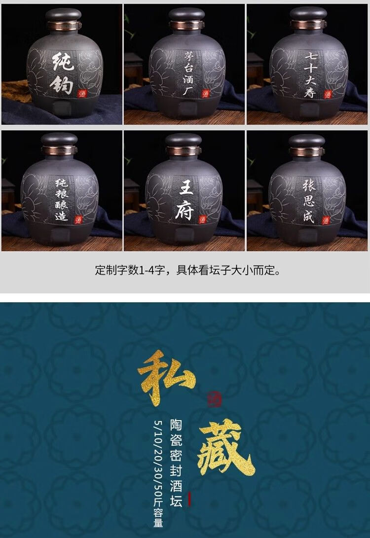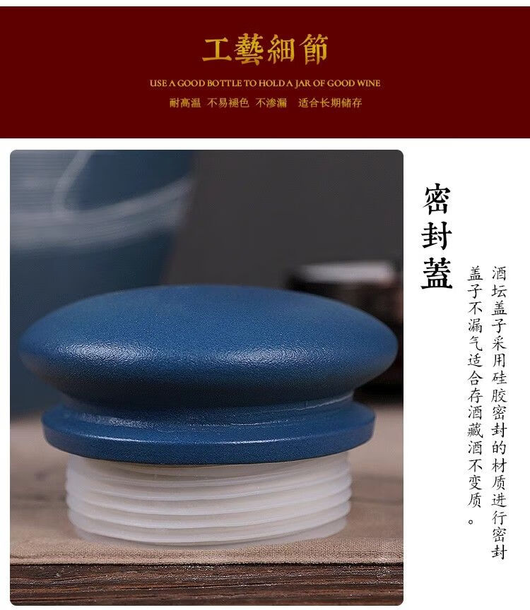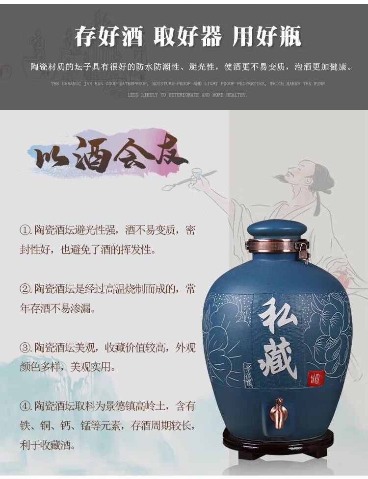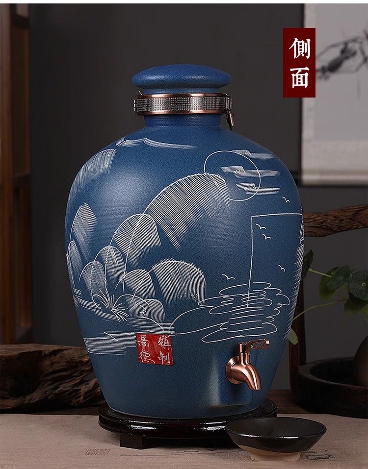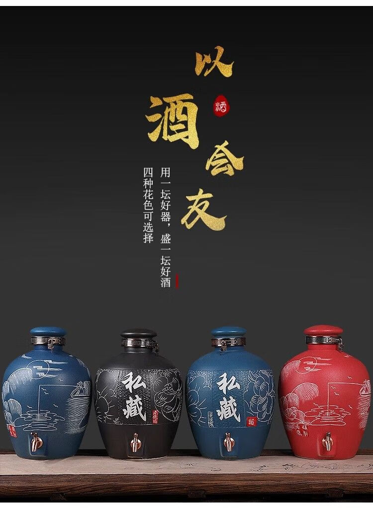 • 商品名称:微娜景德镇陶瓷酒坛10斤20斤50斤带龙头密封泡酒瓶家用存酒壶白酒 20斤红芦苇+古铜龙头/个