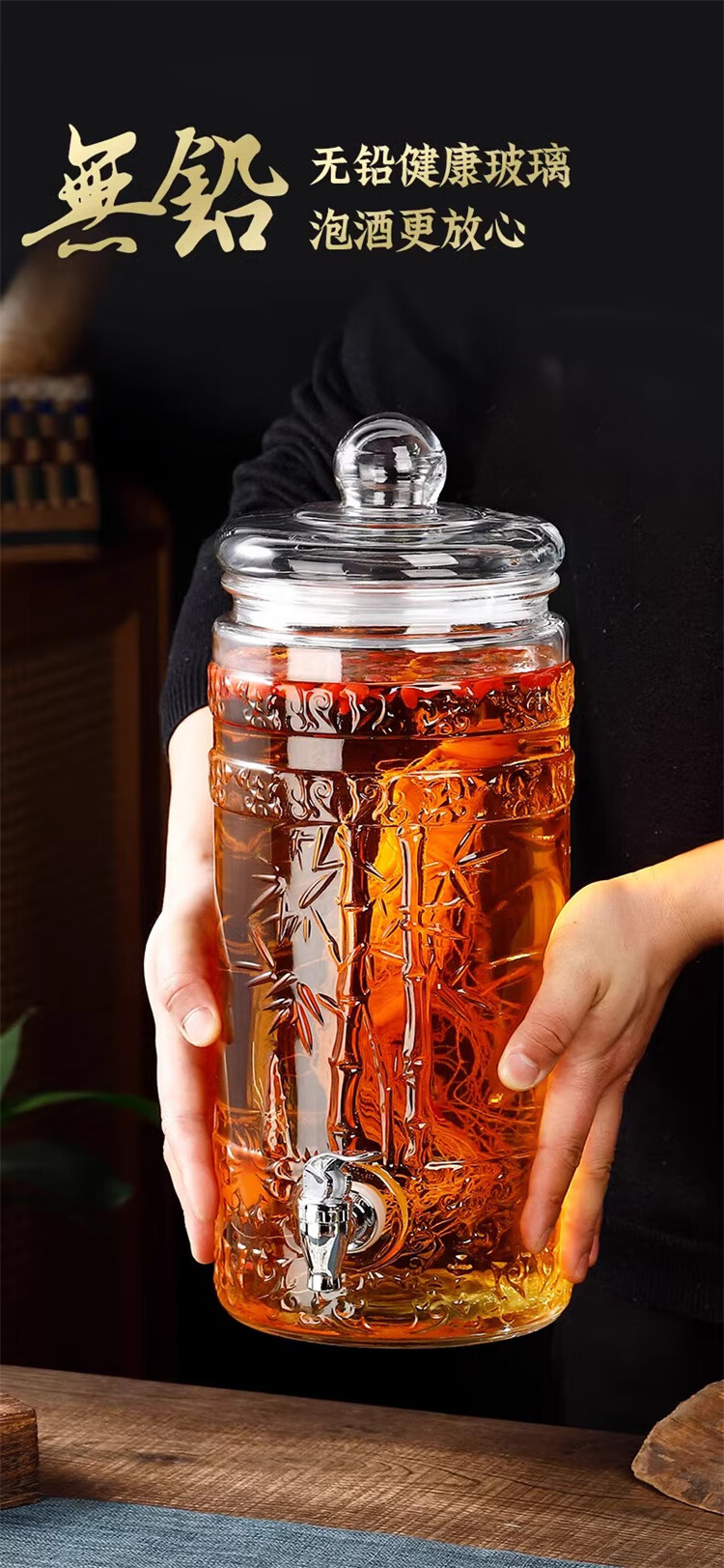 厨具  > 厨房储物  > 泡酒瓶  >  智星辉  >  智星辉泡酒玻璃瓶家用高档密封容器人参白酒药酒罐酒坛子带龙头专用酒瓶 10斤+不锈钢龙头+高款底座 送酒提/个