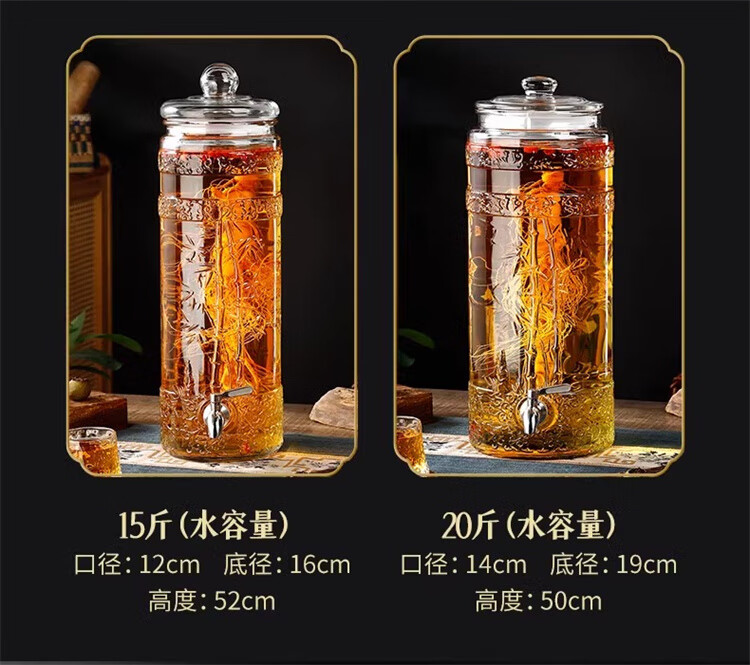 • 商品名称:智星辉泡酒玻璃瓶家用高档密封容器人参白酒药酒罐酒坛子带龙头专用酒瓶 10斤+不锈钢龙头+高款底座 送酒提/个