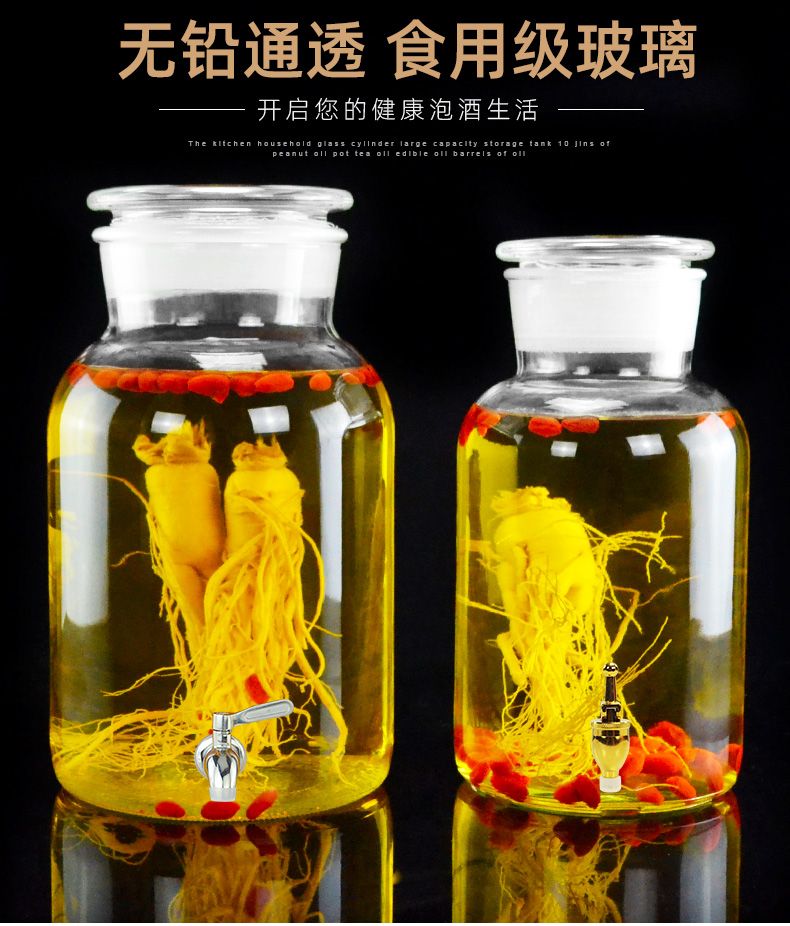 • 商品名称:尼尔欣泡酒玻璃瓶带龙头3斤5斤10斤20密封泡酒罐家用酒坛子专用酒 5斤+木底座 送酒提/个