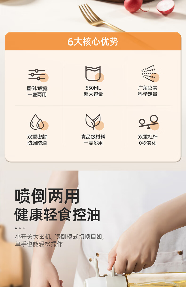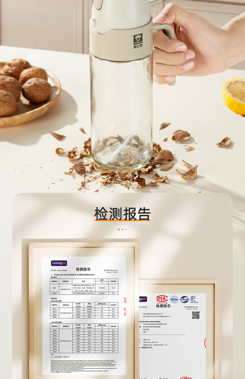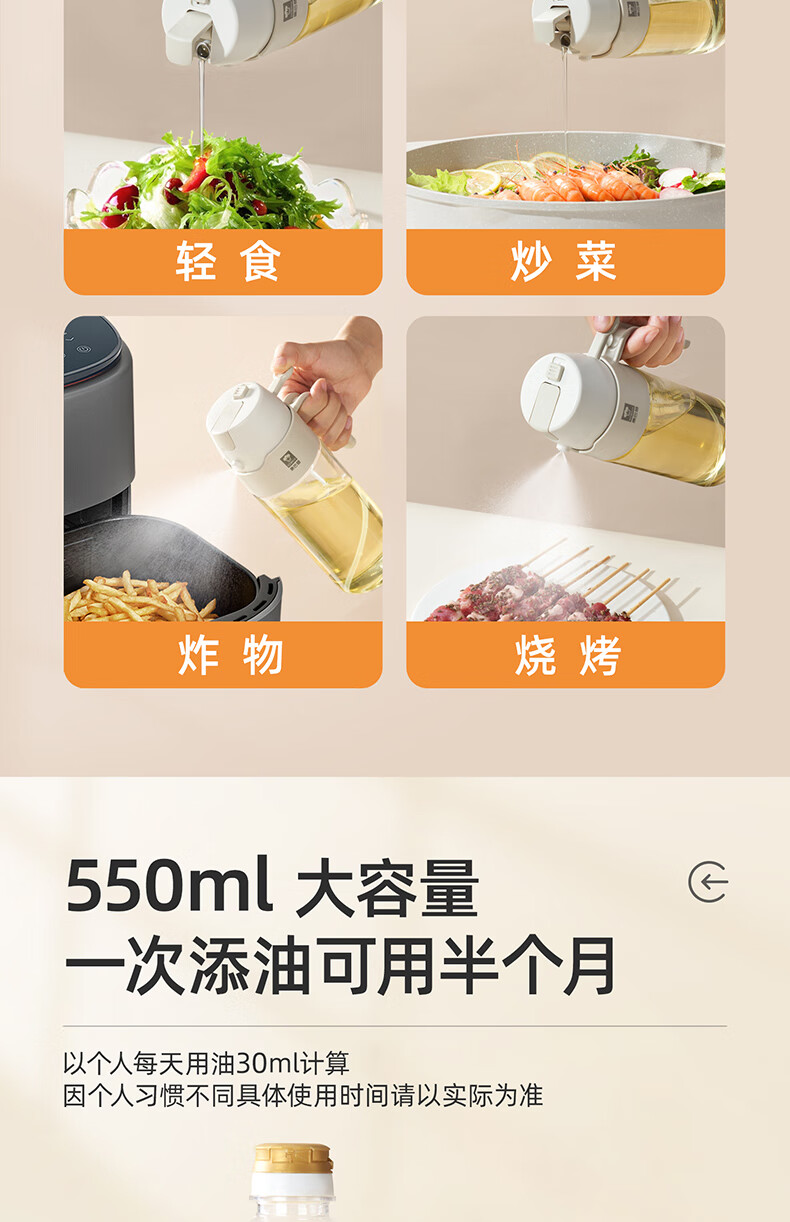 厨具  > 厨房储物  > 油壶  >  康巴赫/KBH  >  康巴赫喷油壶家用厨房不挂油喷倒两用防漏油罐玻璃喷雾油壶调料瓶550ML KH-NZX01/个