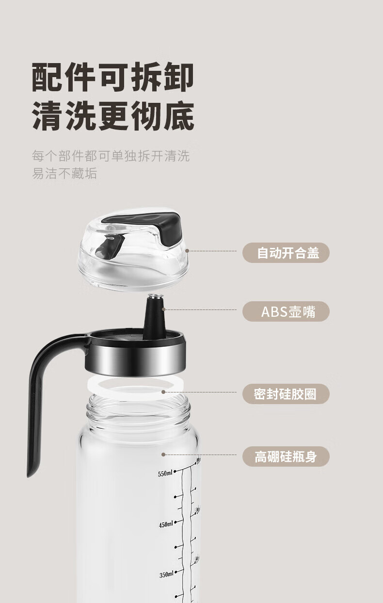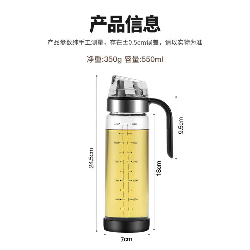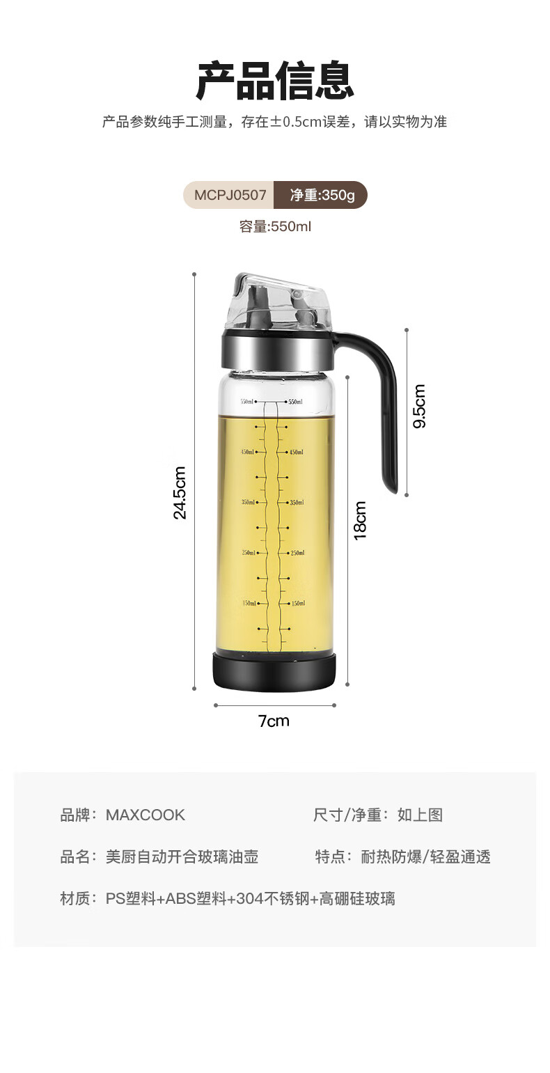 商品名称: 美厨(maxcook)玻璃油壶自动开合防漏厨房家用装油瓶子油罐550ml MCPJ0507 玻璃油壶/个
