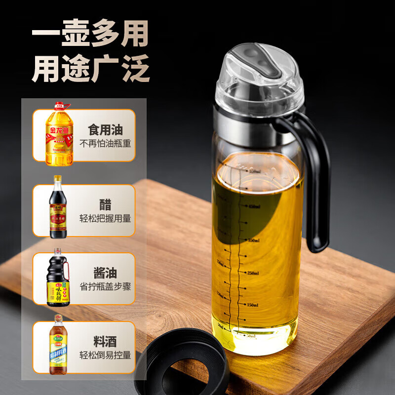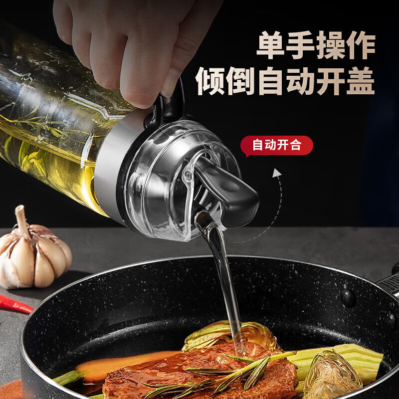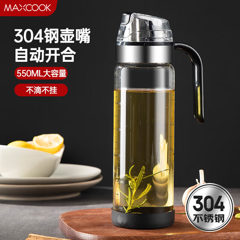 美厨(maxcook)玻璃油壶自动开合防漏厨房家用装油瓶子油罐550ml MCPJ0507 玻璃油壶/个