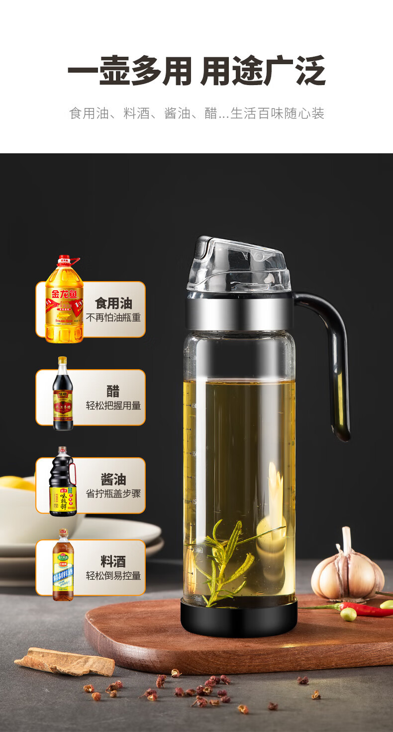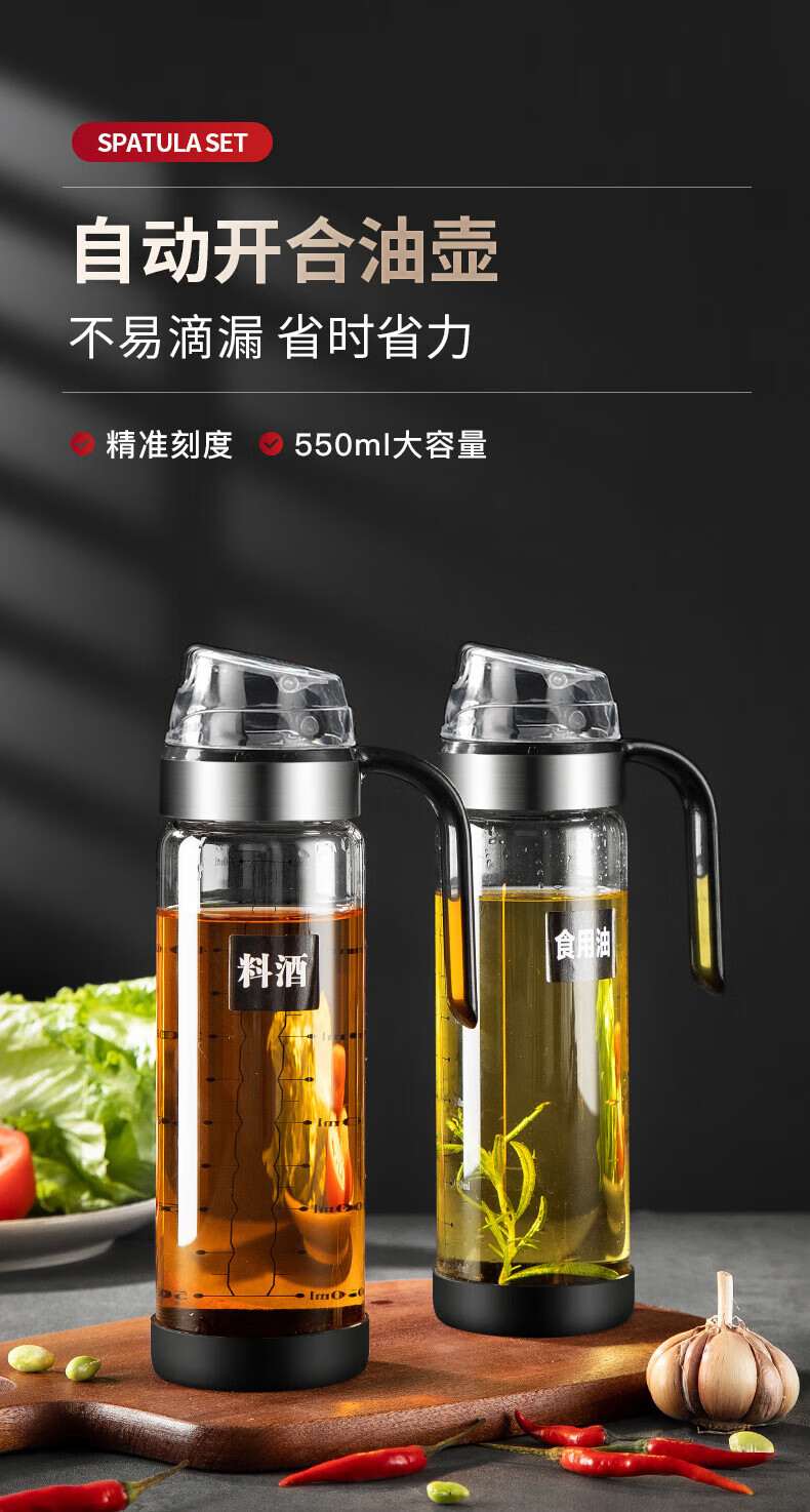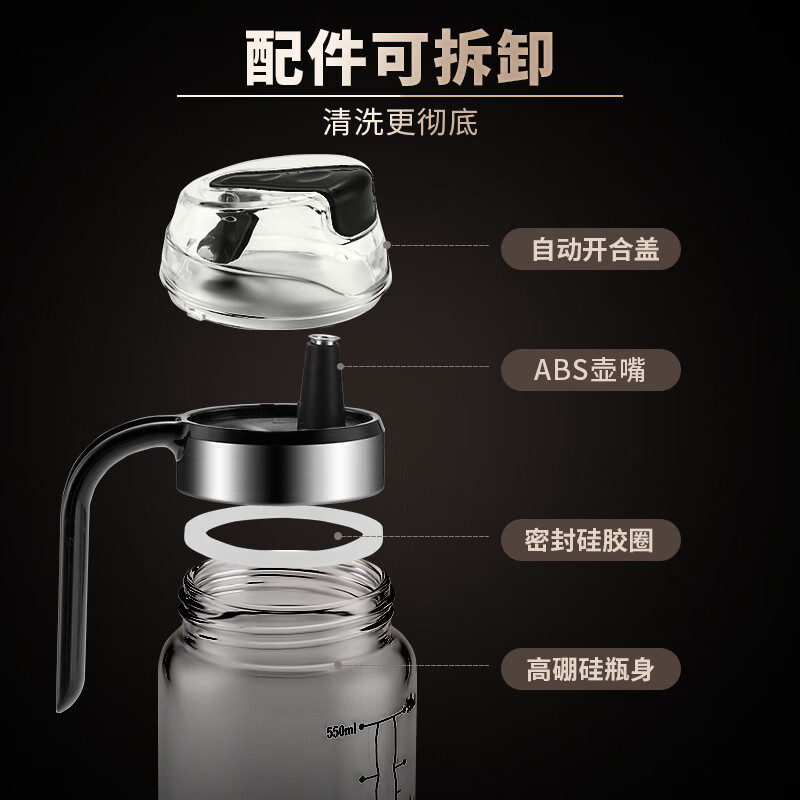 厨具  > 厨房储物  > 油壶  >  美厨/maxcook  >  美厨(maxcook)玻璃油壶自动开合防漏厨房家用装油瓶子油罐550ml MCPJ0507 玻璃油壶/个