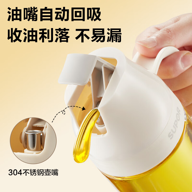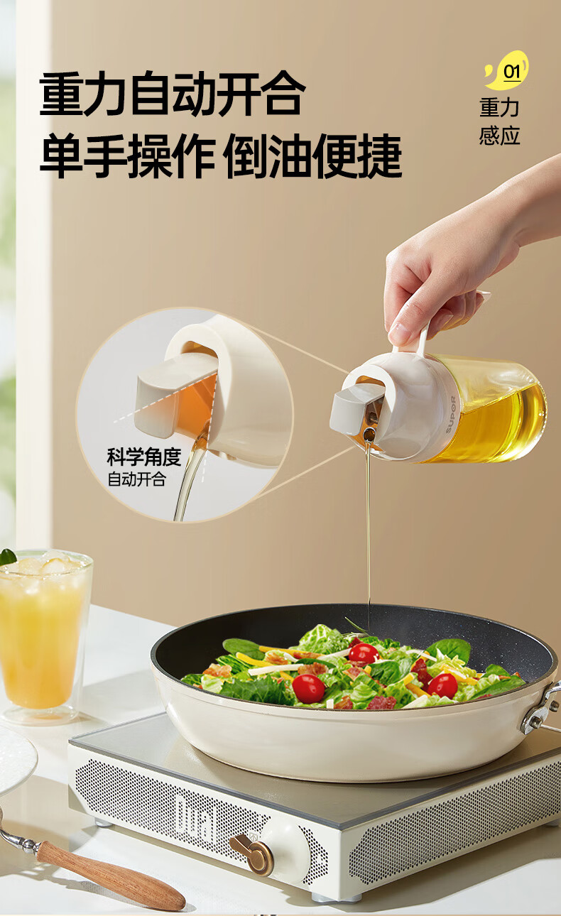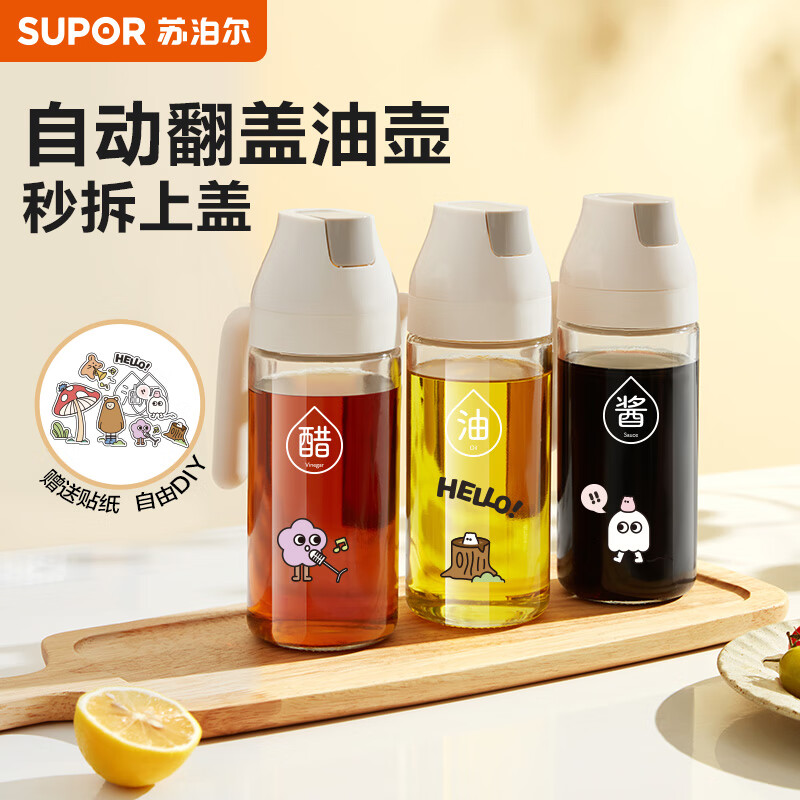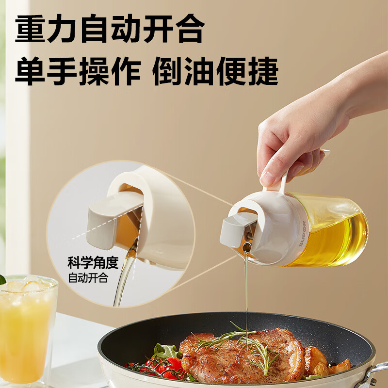 苏泊尔(SUPOR)易拆卸玻璃油壶油罐醋瓶酱油瓶自动翻盖香油壶550mL KGF55DV10 油壶/个