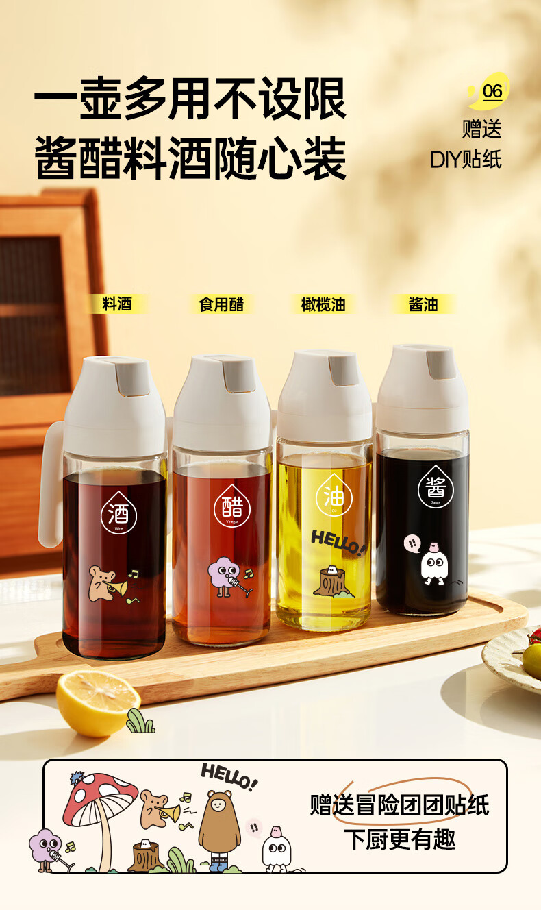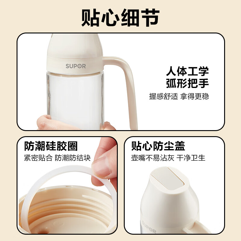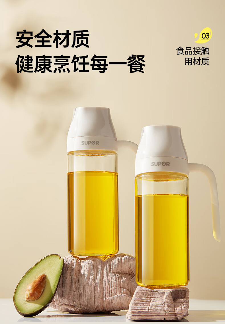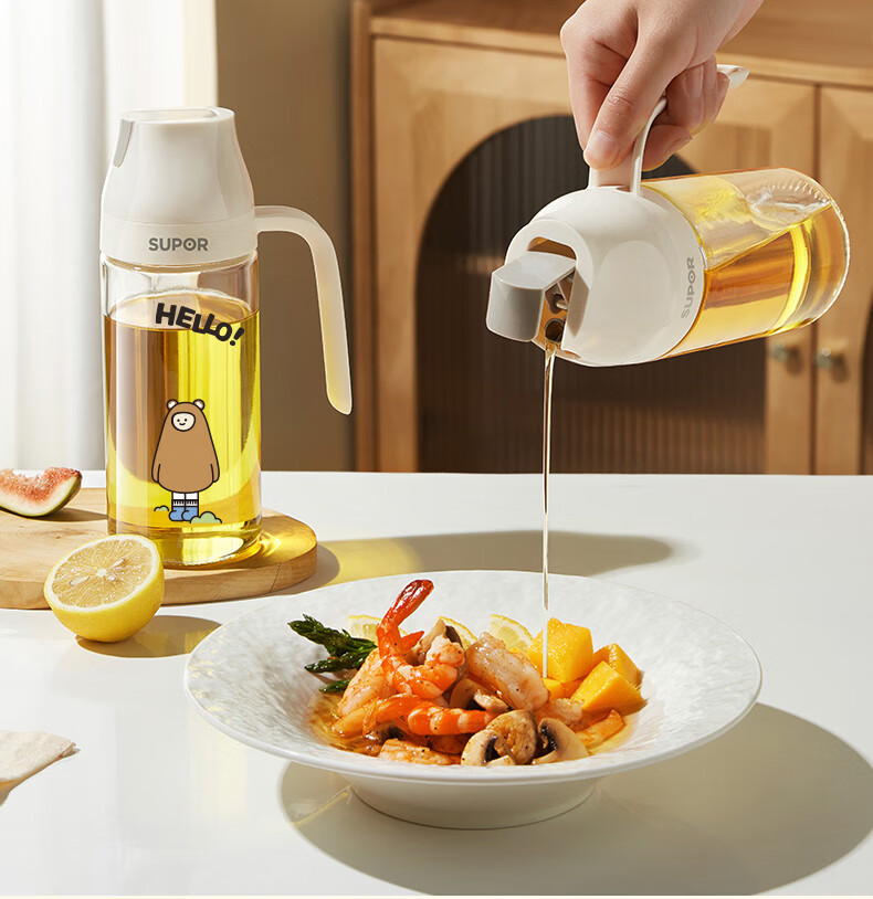 苏泊尔(SUPOR)易拆卸玻璃油壶油罐醋瓶酱油瓶自动翻盖香油壶550mL KGF55DV10 油壶/个