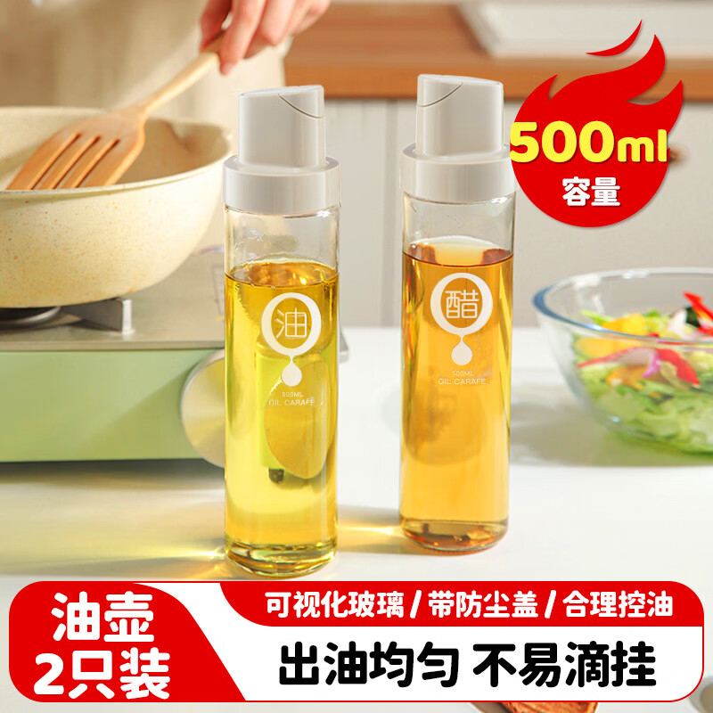厨具  > 厨房储物  > 油壶  >  美厨/maxcook  >  美厨(maxcook)自动开合油壶 玻璃油壶500ML 调料瓶酱油醋瓶 2只装MCPJ2747 玻璃油壶油罐/个
