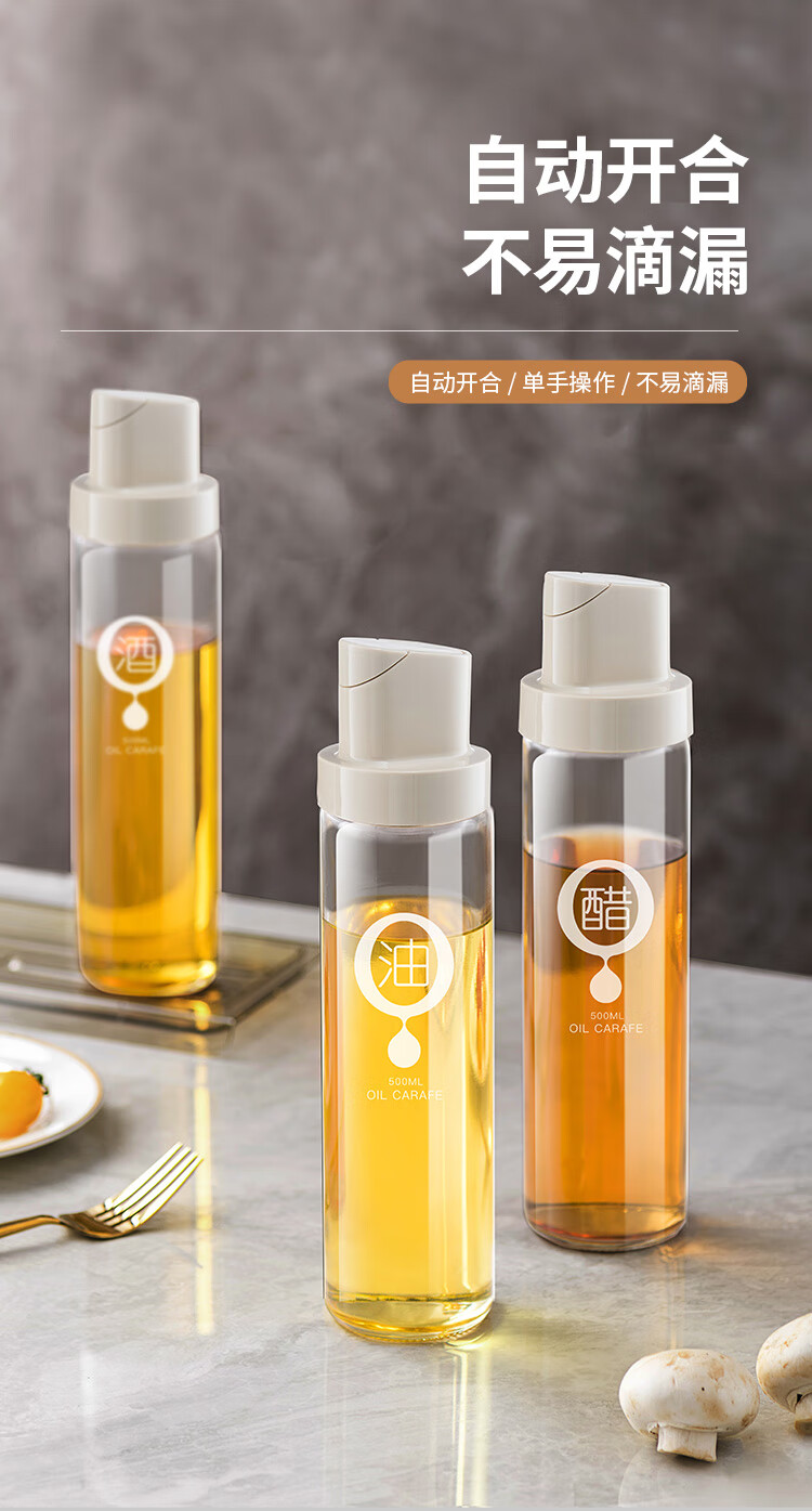 商品名称: 美厨(maxcook)自动开合油壶 玻璃油壶500ML 调料瓶酱油醋瓶 2只装MCPJ2747 玻璃油壶油罐/个