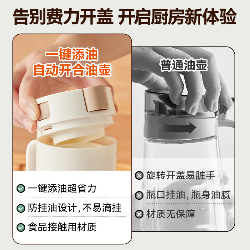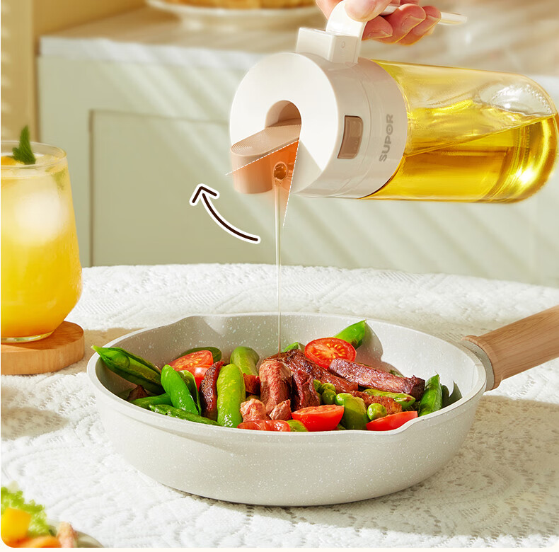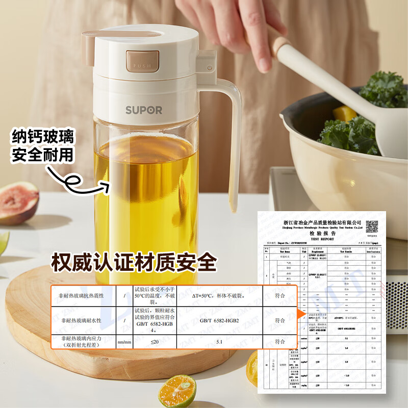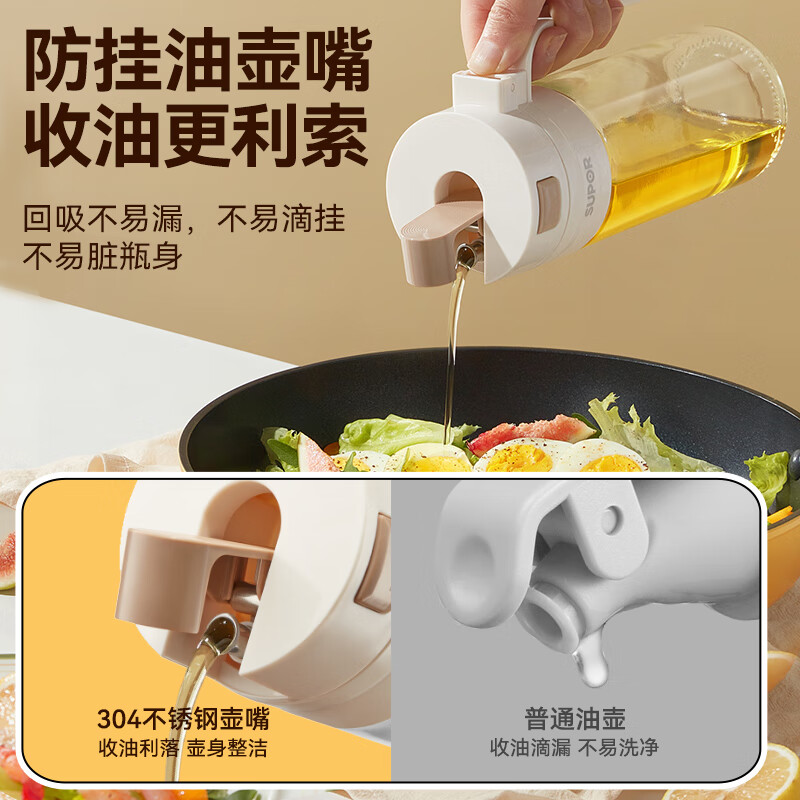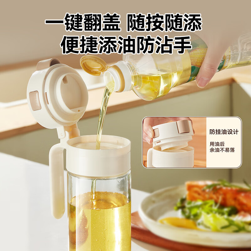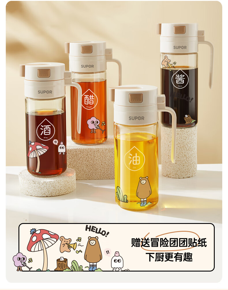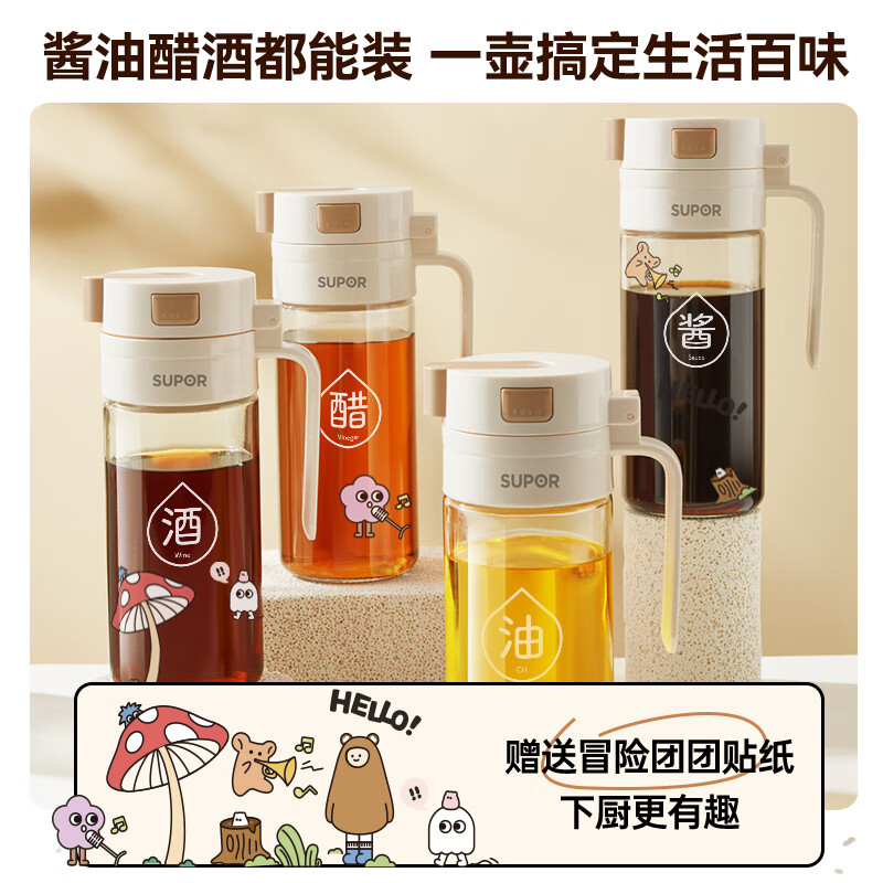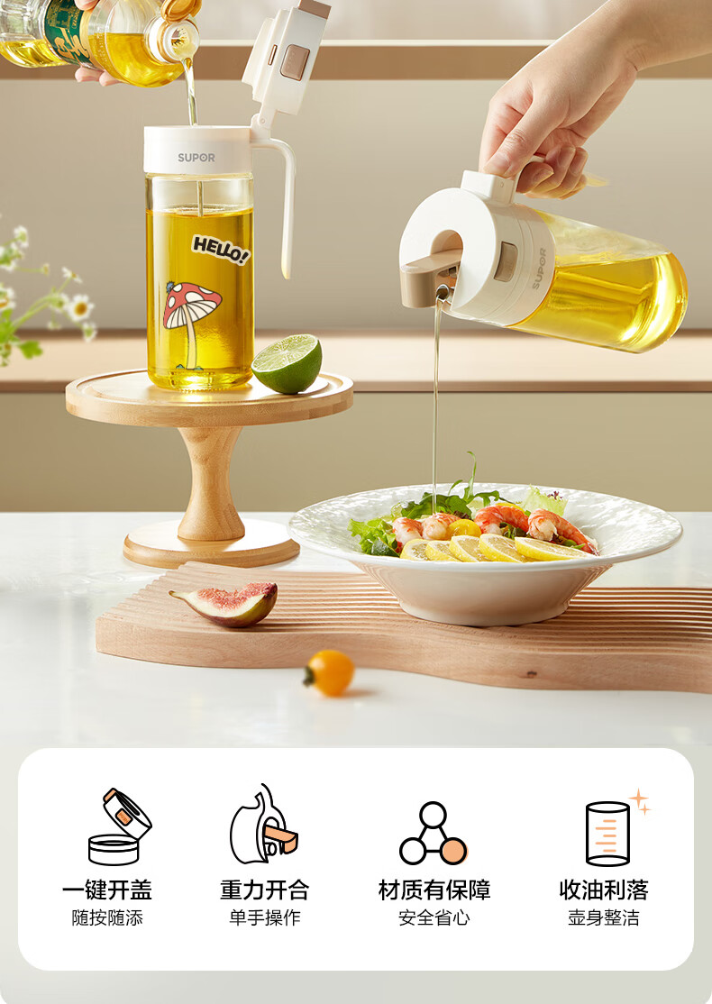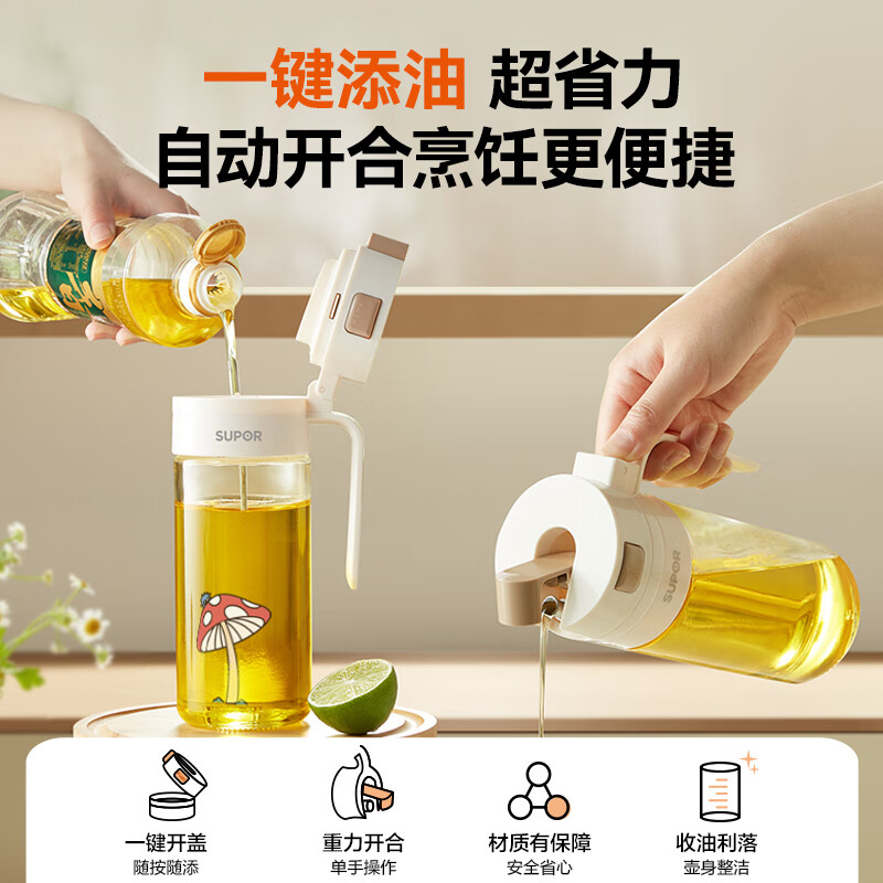 苏泊尔(SUPOR)玻璃油壶不挂油 酱油瓶防漏嘴油罐壶醋瓶醋壶调料瓶自动翻盖500ml KGF55DU10/个