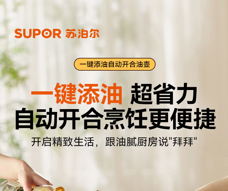厨具  > 厨房储物  > 油壶  >  苏泊尔/SUPOR  >  苏泊尔(SUPOR)玻璃油壶不挂油 酱油瓶防漏嘴油罐壶醋瓶醋壶调料瓶自动翻盖500ml KGF55DU10/个
