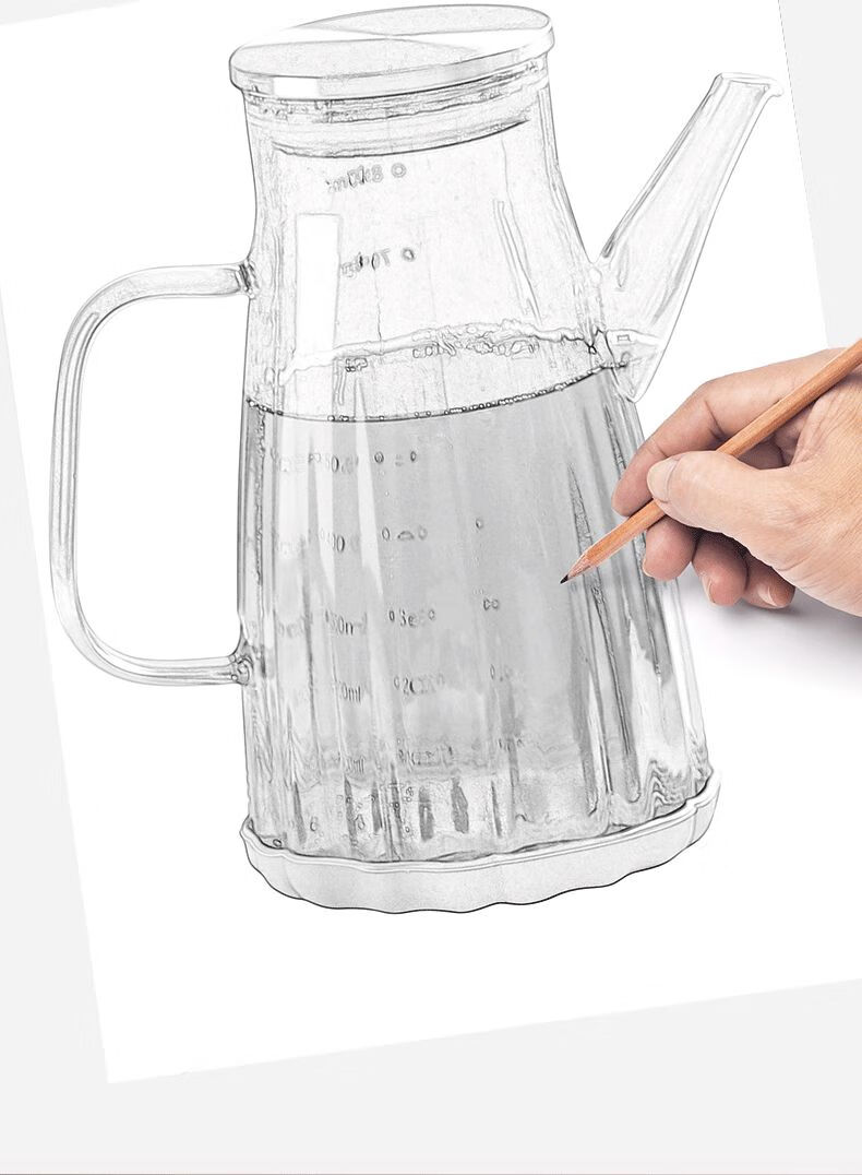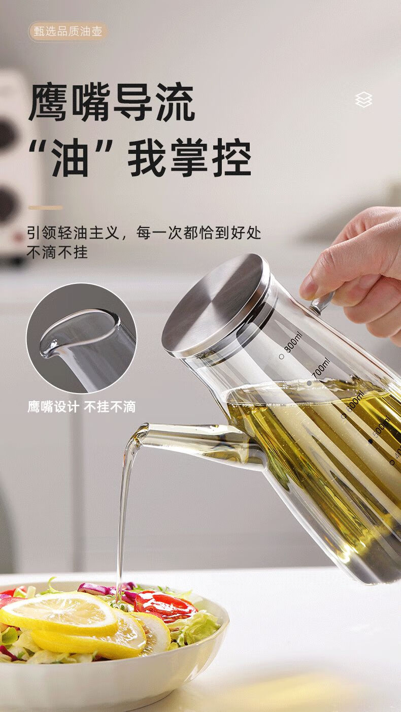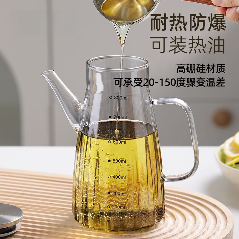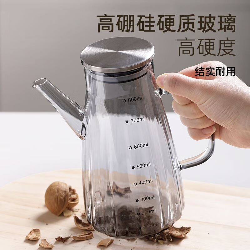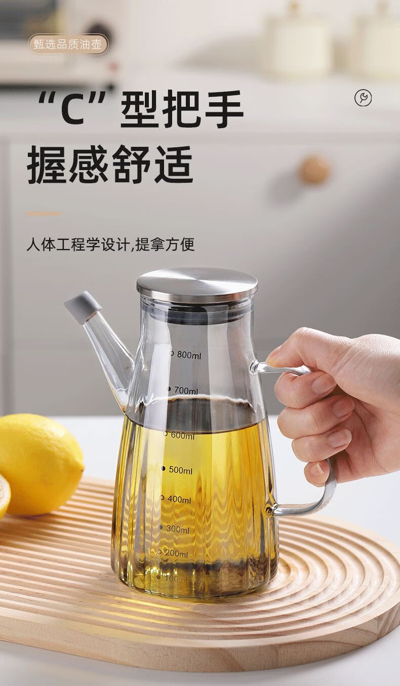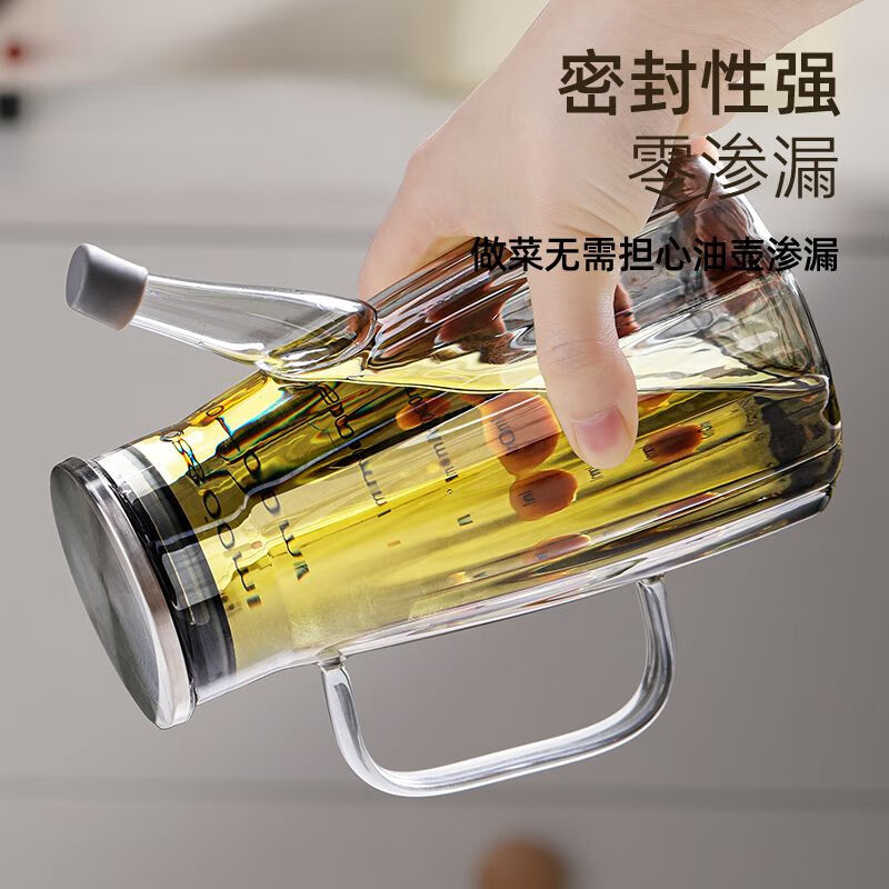 厨具  > 厨房储物  > 油壶  >  靓厅  >  靓厅高硼硅玻璃油壶厨房家用不挂油油瓶酱油醋调料瓶装油容器 波纹款【烟灰1000ml】(把手颜色随机灰色/琥珀色)/个