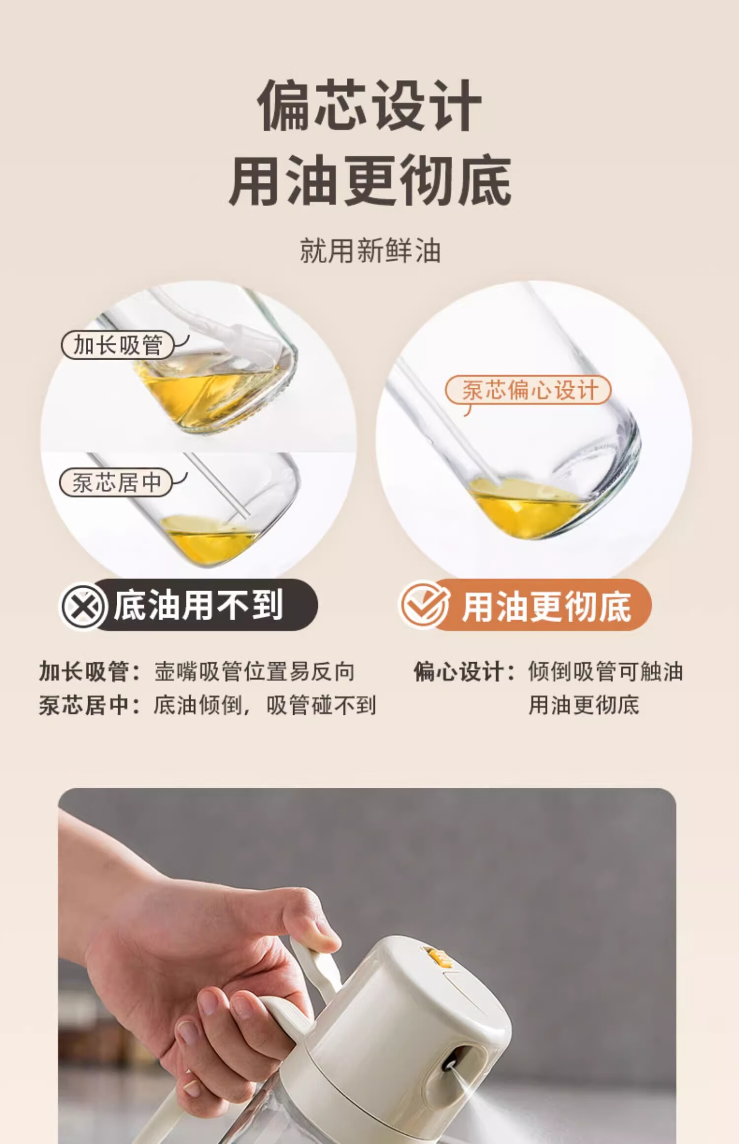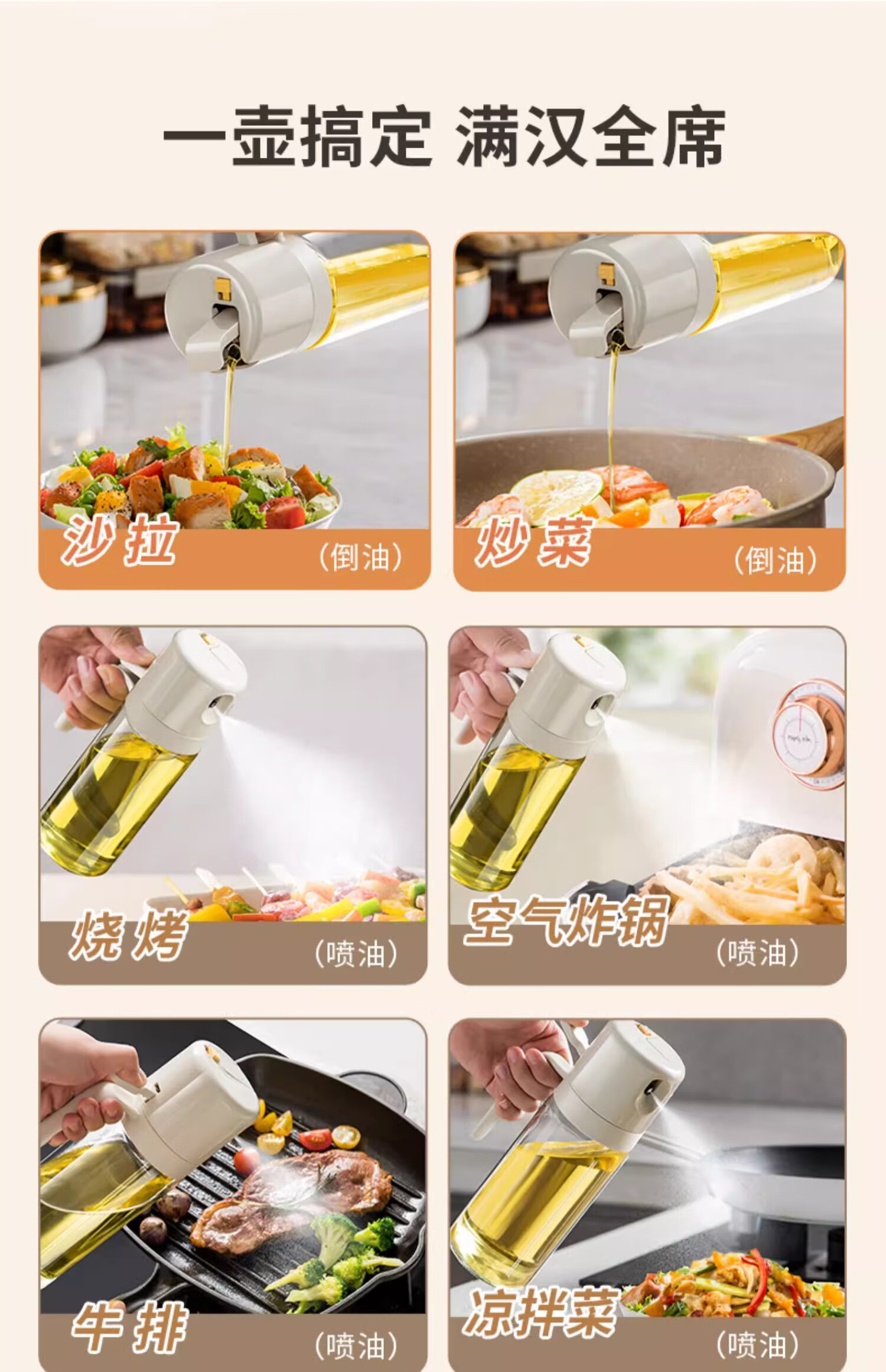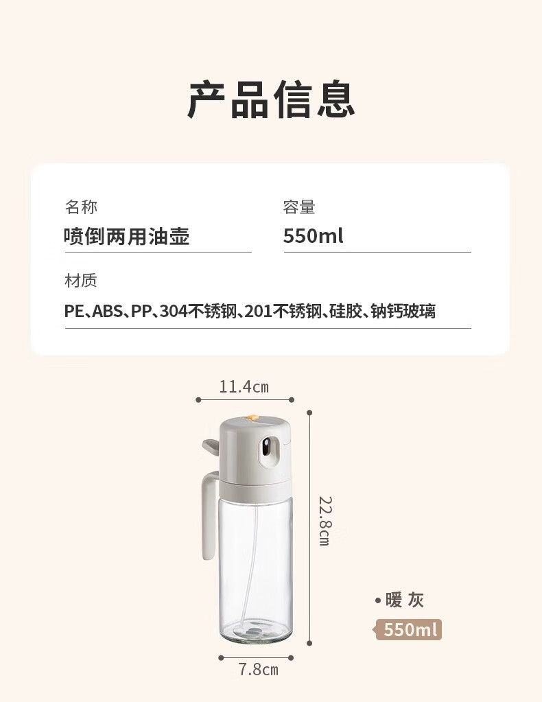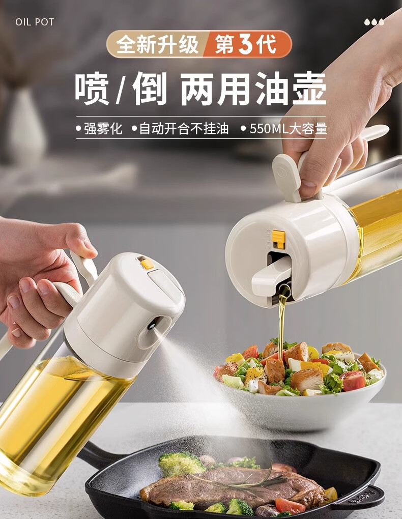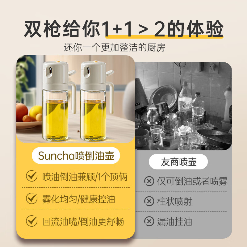厨具  > 厨房储物  > 油壶  >  双枪/Suncha  >  双枪(Suncha)油壶 喷倒一体定量 玻璃油壶罐食用油喷雾调料瓶油喷壶550ml -/个