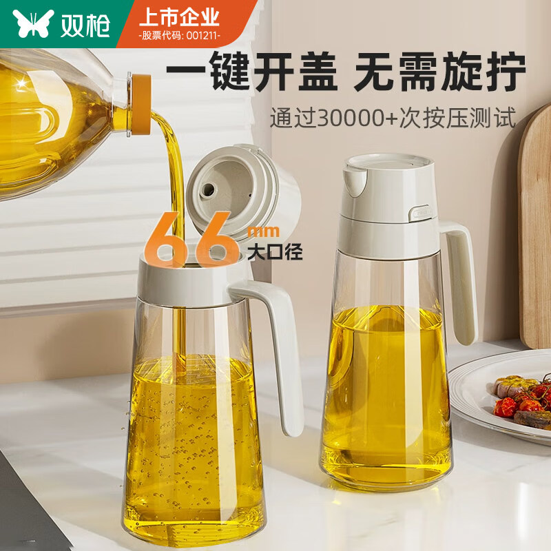 厨具  > 厨房储物  > 油壶  >  双枪/Suncha  >  双枪油壶厨房家用不挂油玻璃自动开合油罐食用油酱油瓶醋油瓶650ml DP50342/个