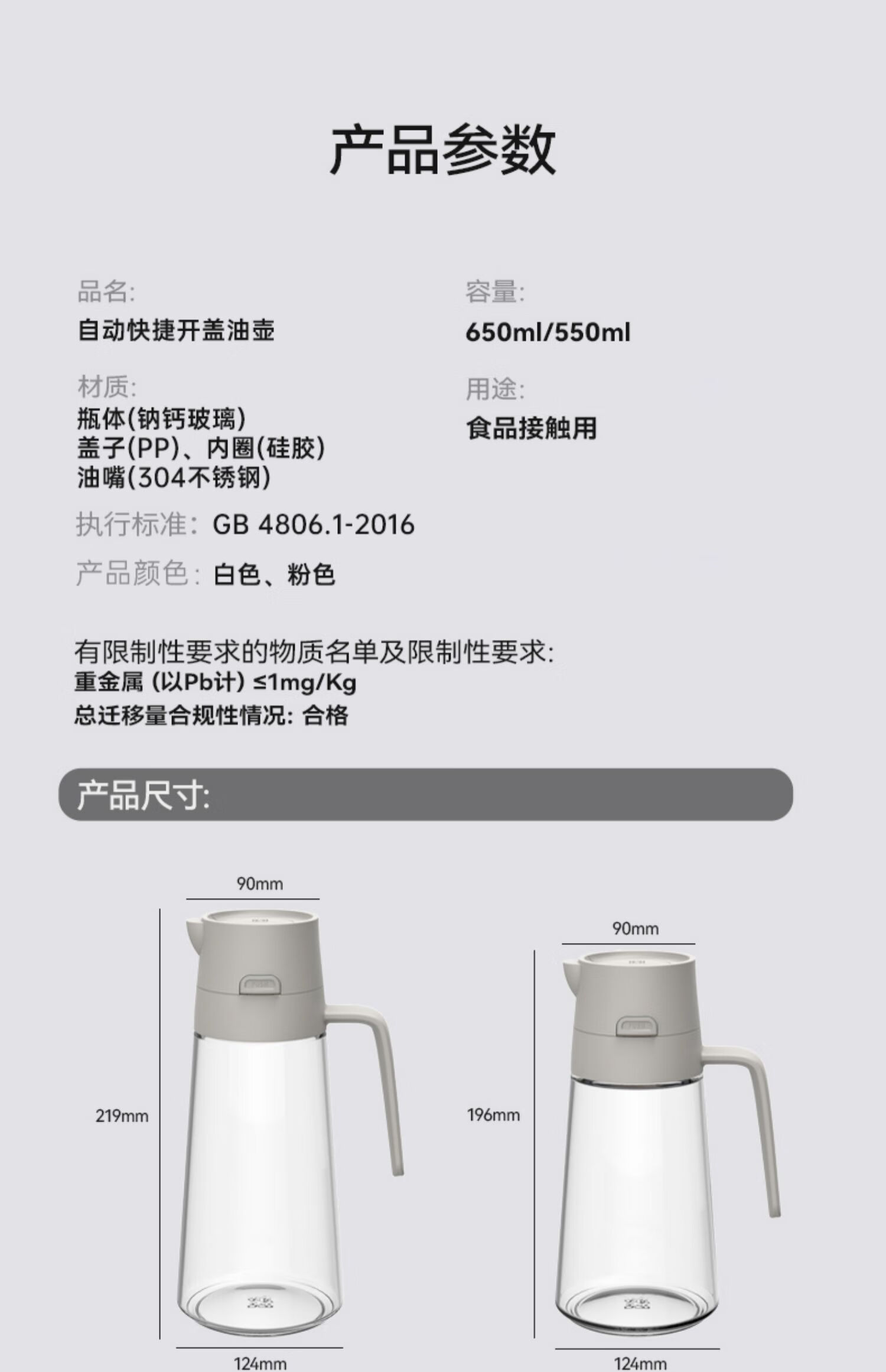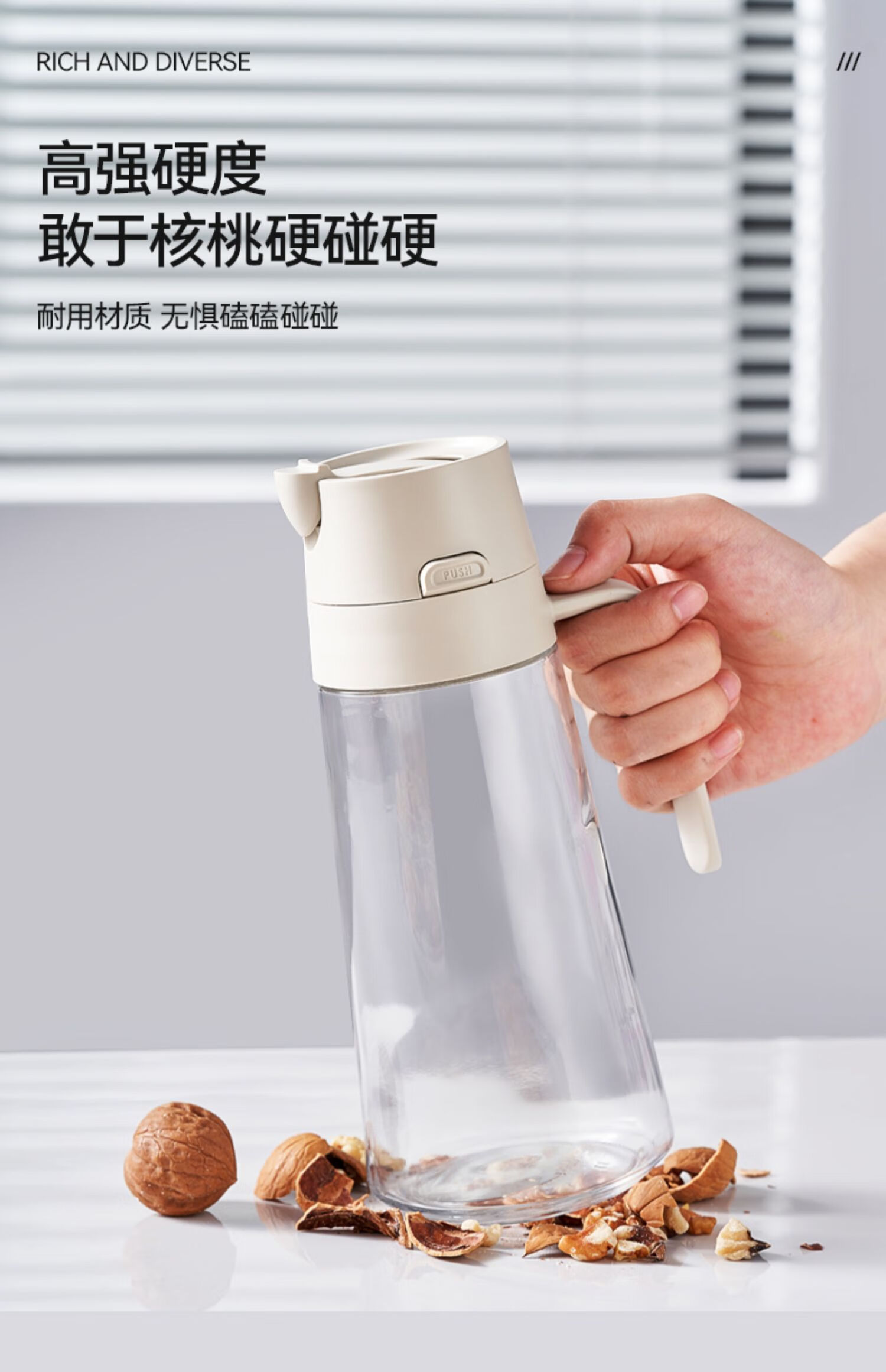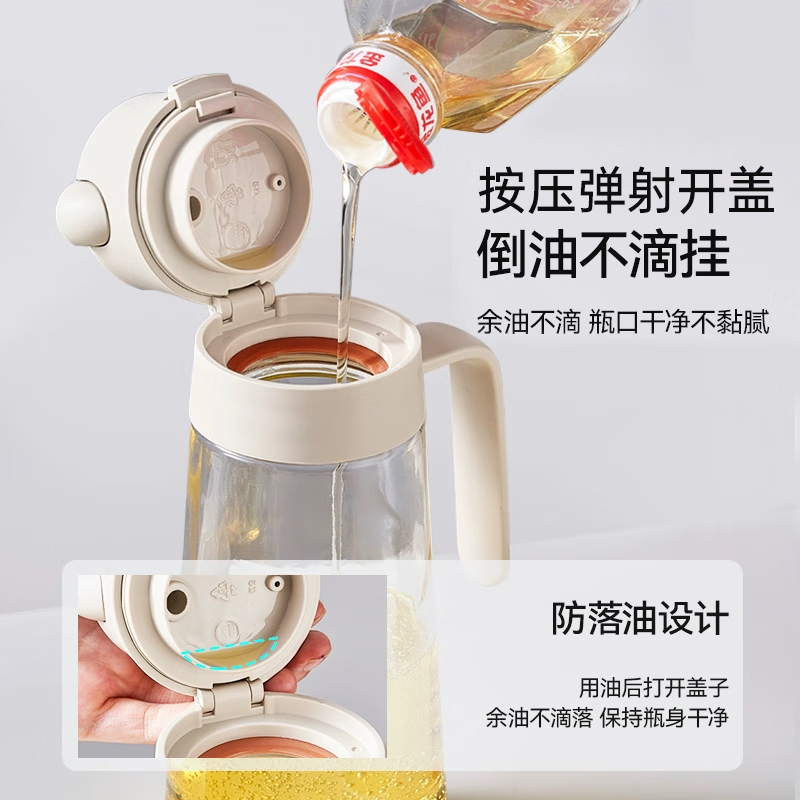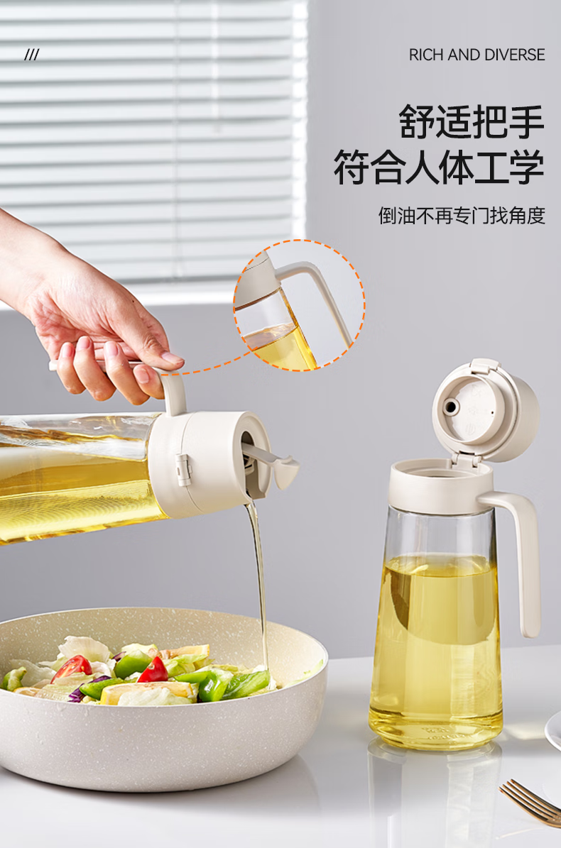 • 商品名称:双枪油壶厨房家用不挂油玻璃自动开合油罐食用油酱油瓶醋油瓶650ml DP50342/个