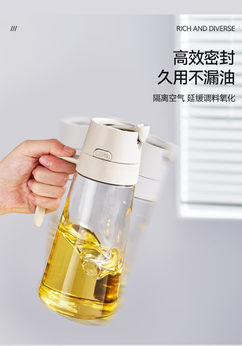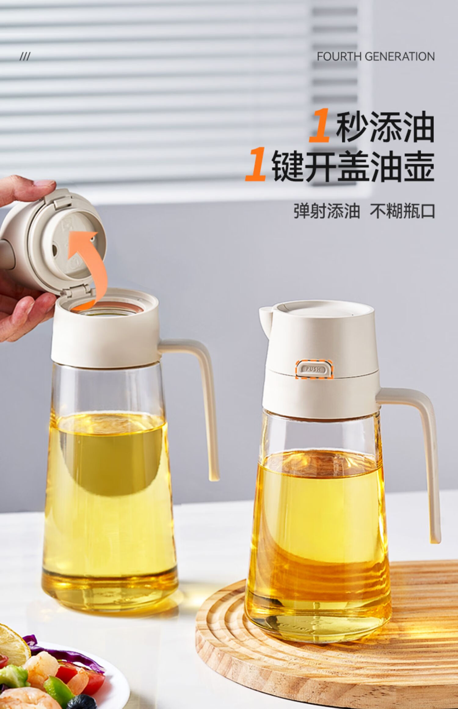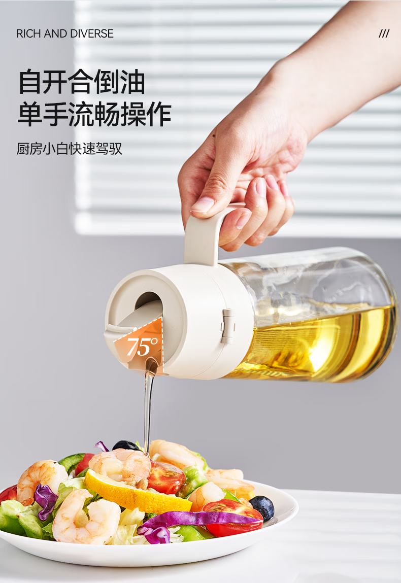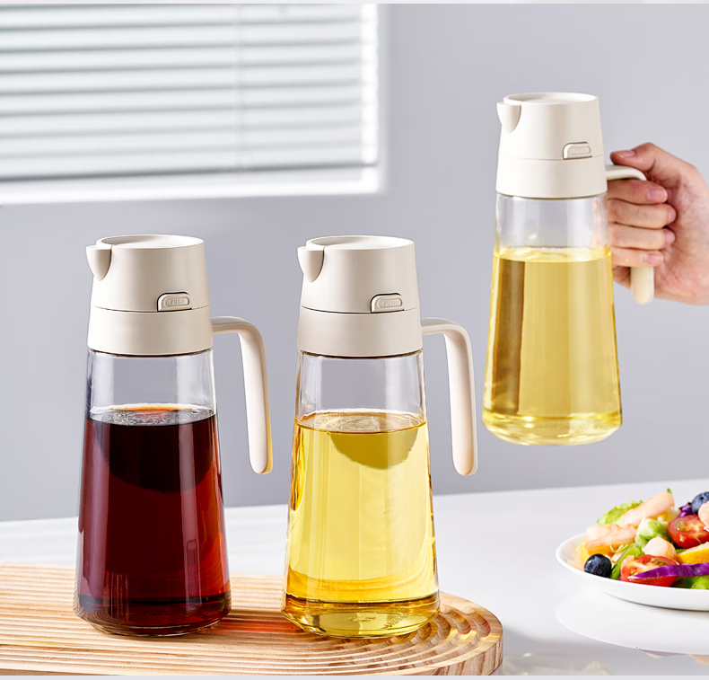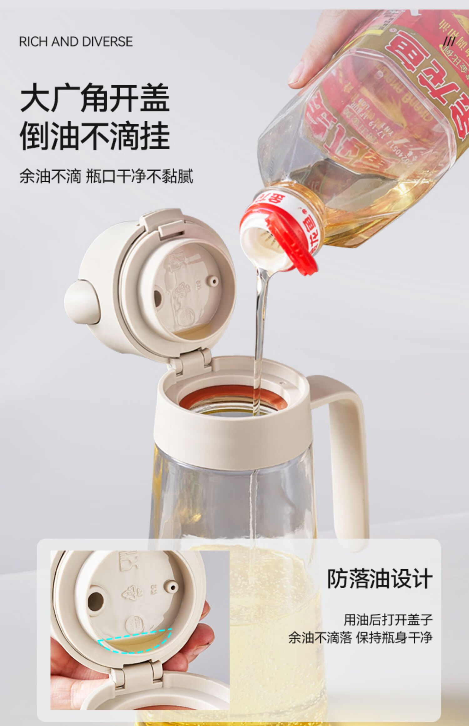 • 商品名称:双枪油壶厨房家用不挂油玻璃自动开合油罐食用油酱油瓶醋油瓶650ml DP50342/个