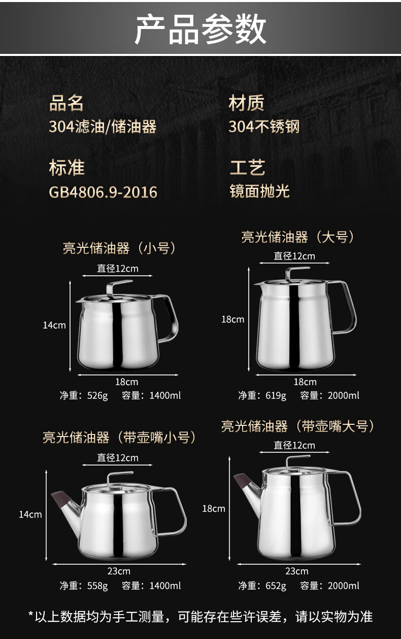 商品名称: 思凯卓304不锈钢油壶家用带滤网厨房过滤油渣储油罐防漏油瓶大号带嘴 skzyh001/个