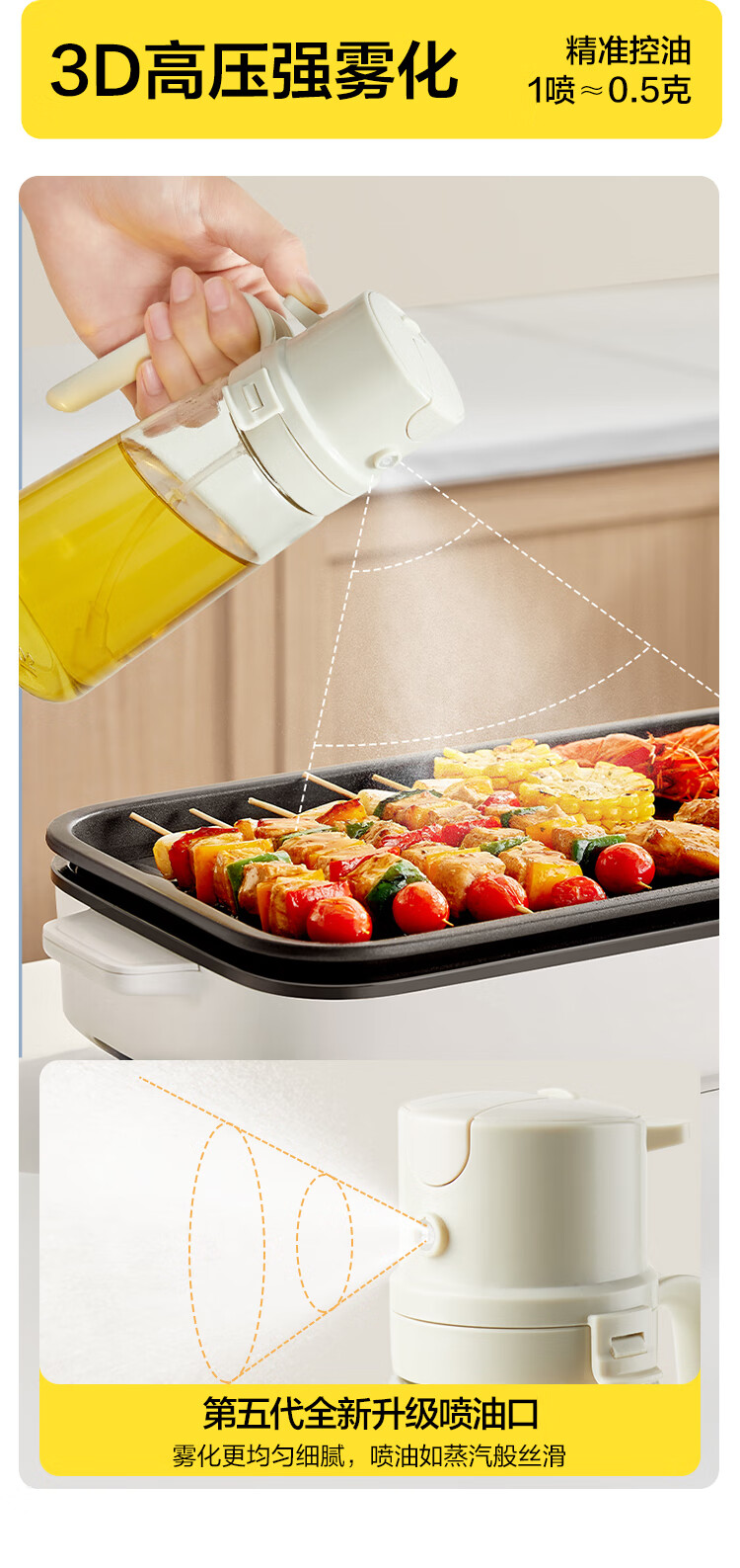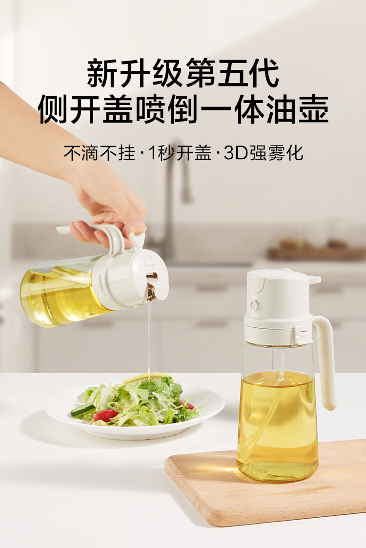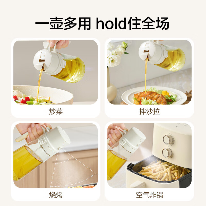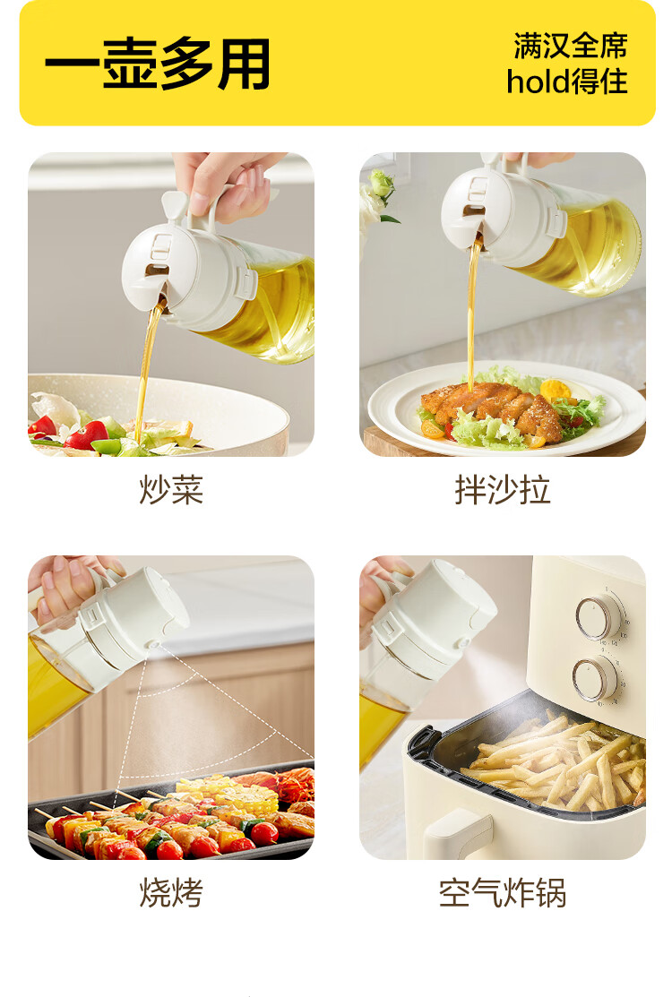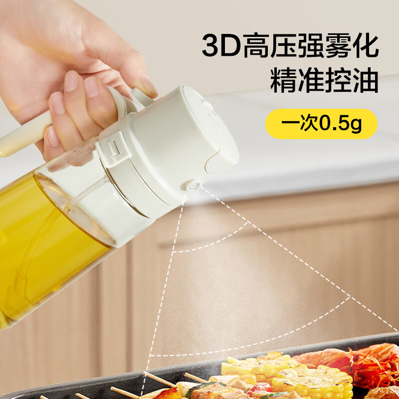 惠寻 喷油壶 喷雾倒油喷油一体玻璃油罐调料酱油瓶不挂油470ml 喷倒一体油壶/个