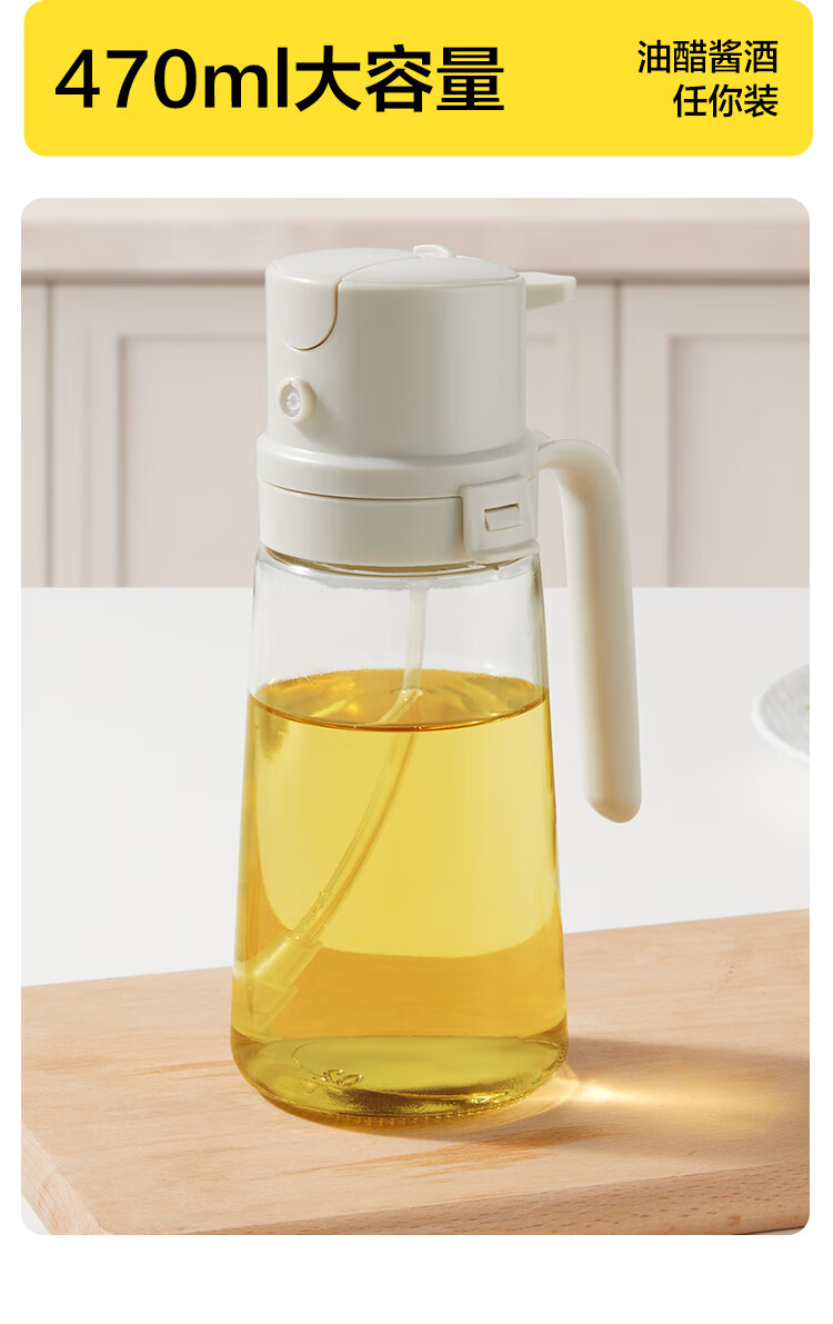 厨具  > 厨房储物  > 油壶  >  惠寻  >  惠寻 喷油壶 喷雾倒油喷油一体玻璃油罐调料酱油瓶不挂油470ml 喷倒一体油壶/个