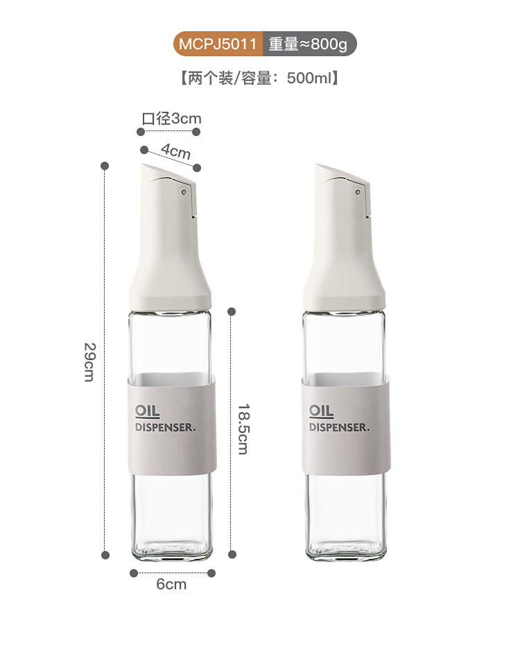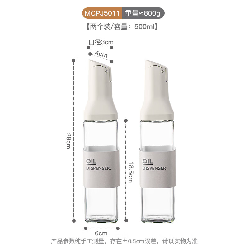 • 商品名称:美厨(maxcook)自动开合油壶 玻璃油壶500ML 调料瓶酱油醋瓶 2只 MCPJ5011 玻璃油壶油罐/个