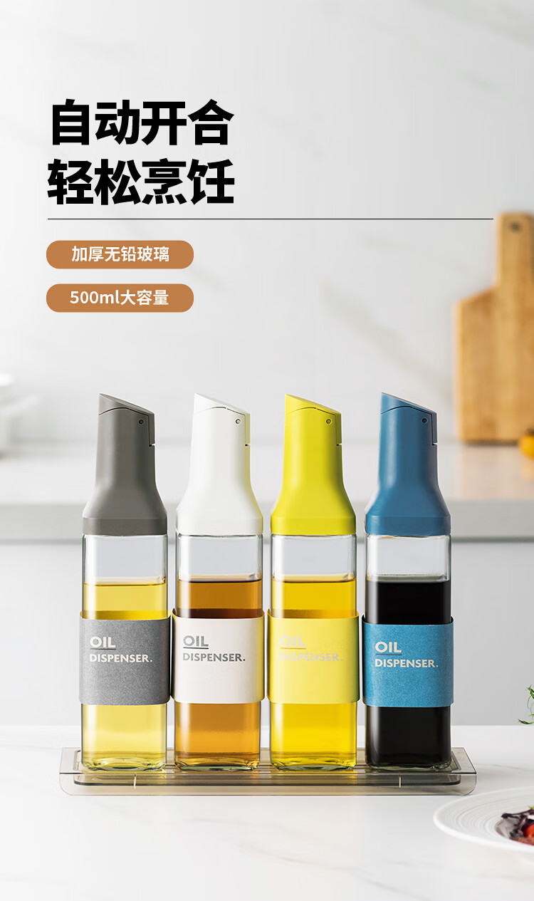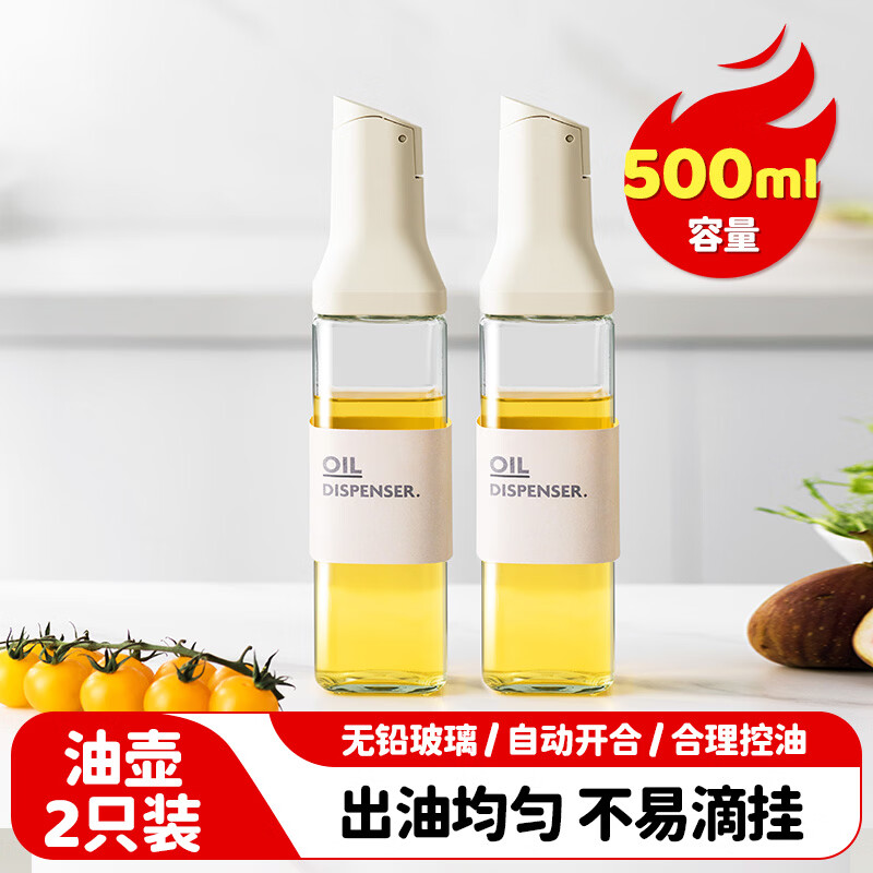 美厨(maxcook)自动开合油壶 玻璃油壶500ML 调料瓶酱油醋瓶 2只 MCPJ5011 玻璃油壶油罐/个
