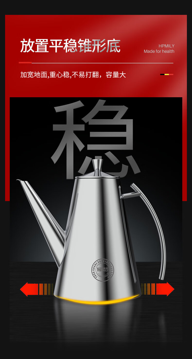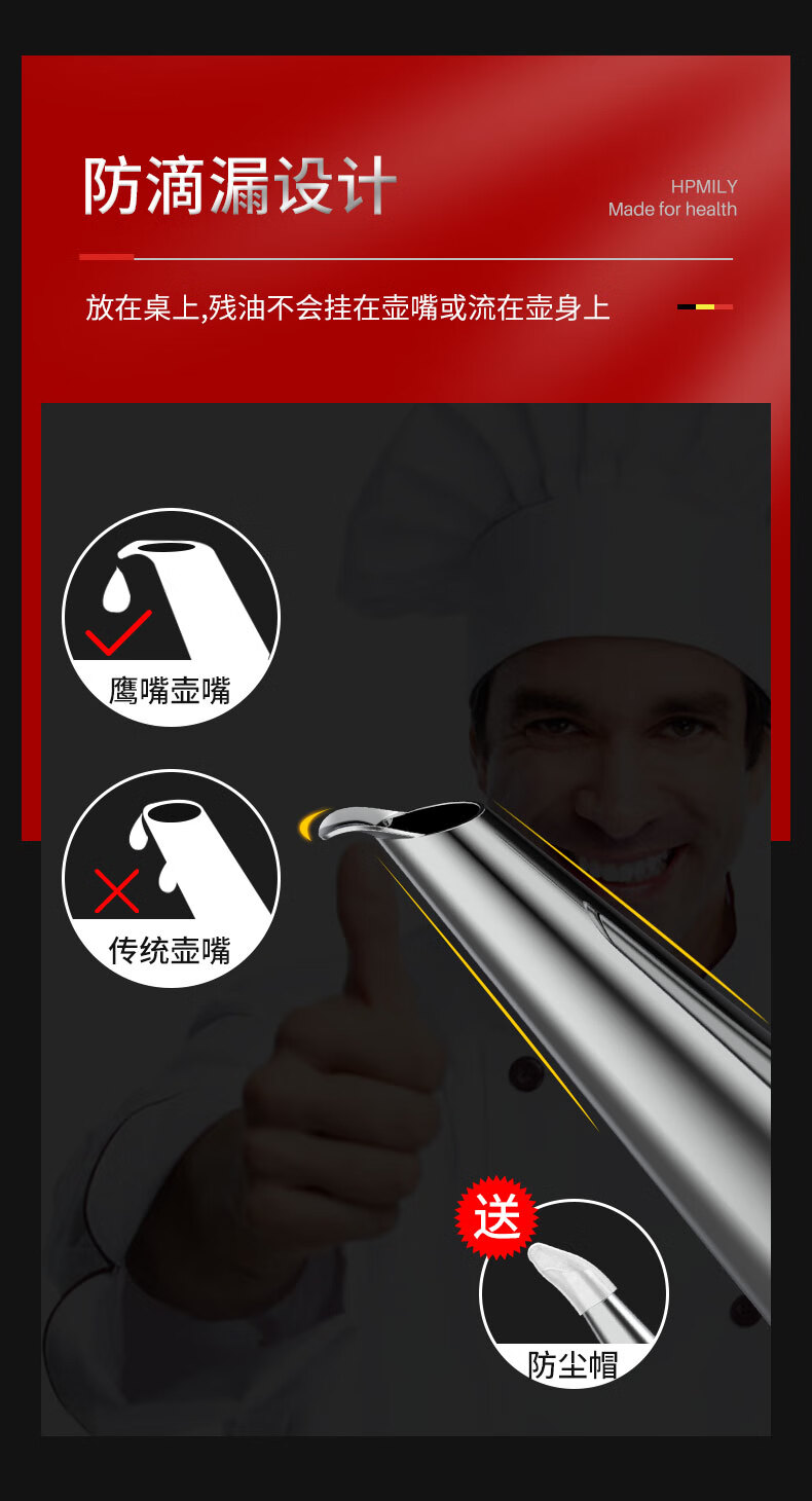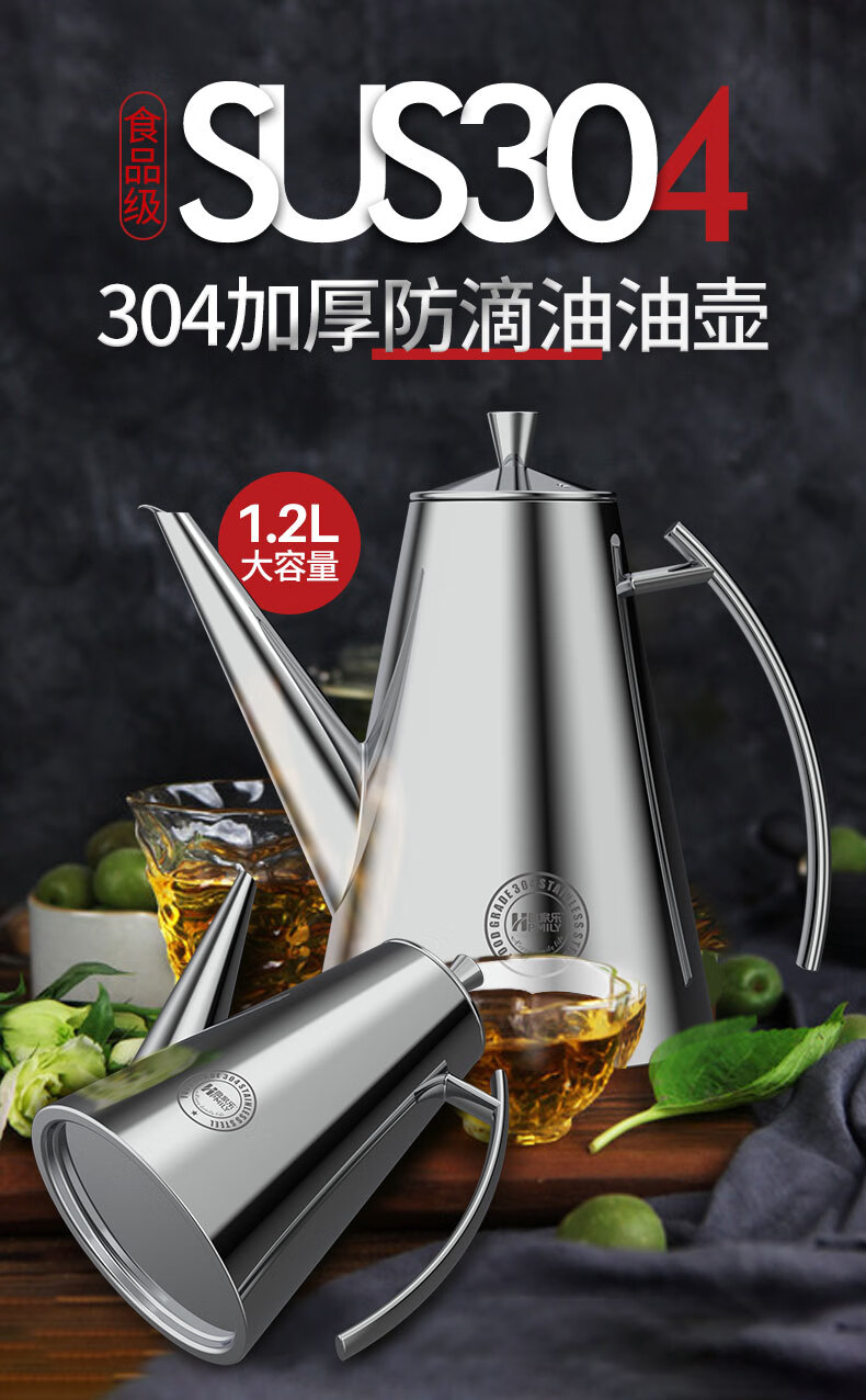 厨具  > 厨房储物  > 油壶  >  助家乐/HPMILY  >  助家乐(HPMILY)油壶304不锈钢油瓶家用不挂油宽口900ml防漏调料瓶加厚厨房调味 304不锈钢油瓶家用/个