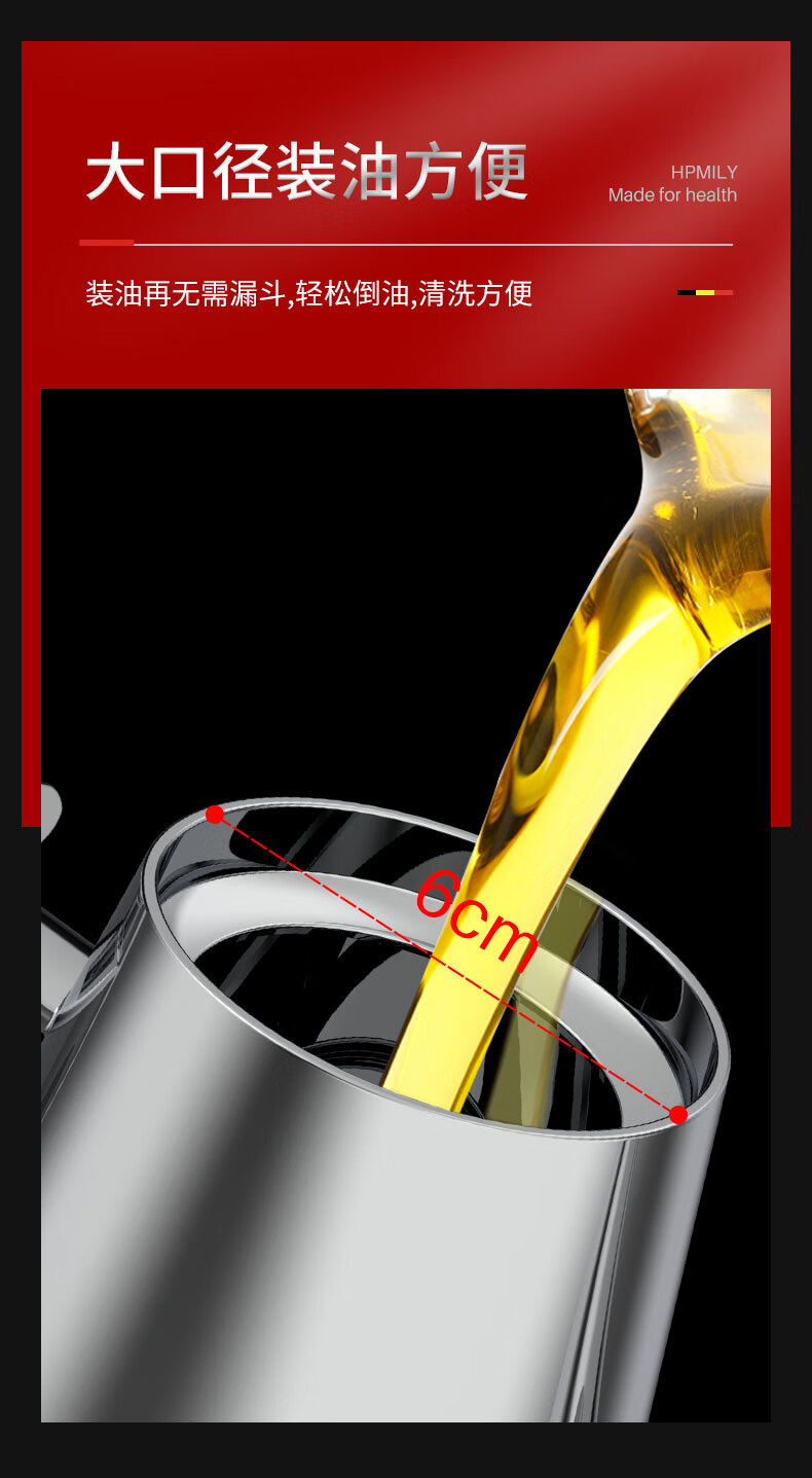 助家乐(HPMILY)油壶304不锈钢油瓶家用不挂油宽口900ml防漏调料瓶加厚厨房调味 304不锈钢油瓶家用/个