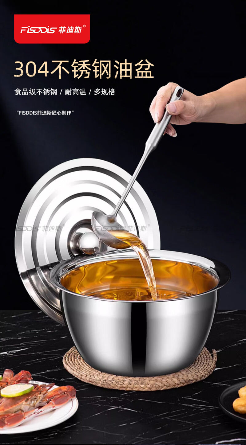 厨具  > 厨房储物  > 猪油罐/猪油盆  >  FISDDIS  >  FISDDIS304不锈钢油盆猪油盆9寸 FD-YG30419/个