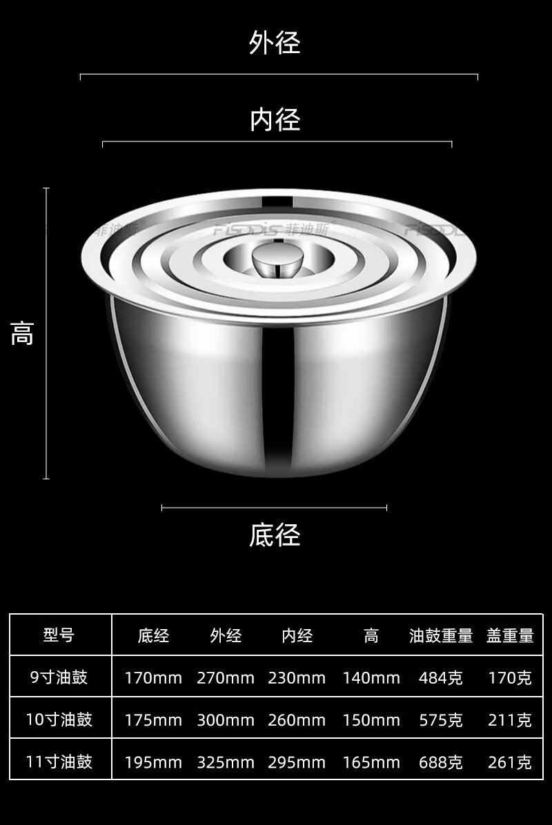 • 商品名称:FISDDIS304不锈钢油盆猪油盆9寸 FD-YG30419/个