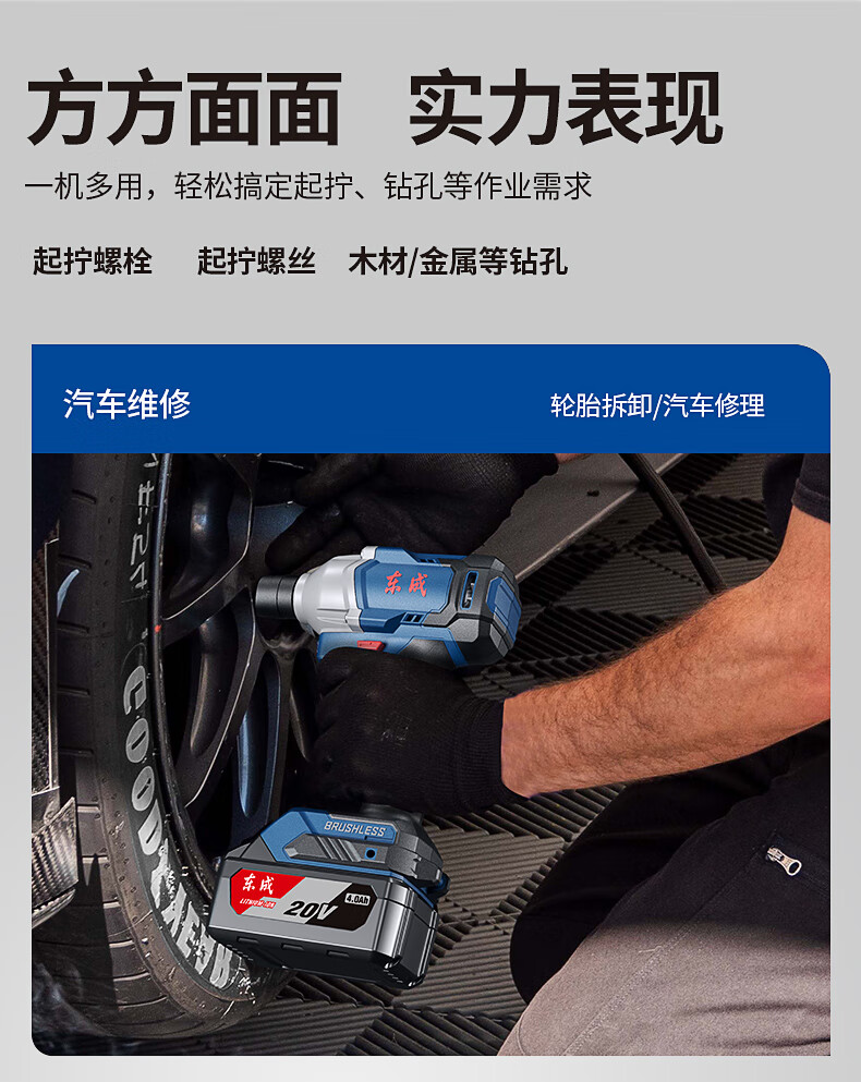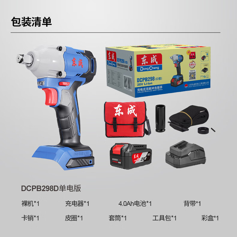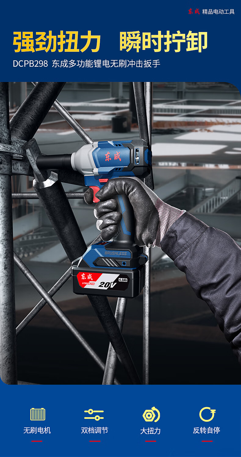 五金/工具  > 电动工具  > 电动扳手  >  东成  >  东成20V锂电无刷电动扳手DCPB298D汽修冲击锂电扳手充电式套筒风炮 DCPB298D/台