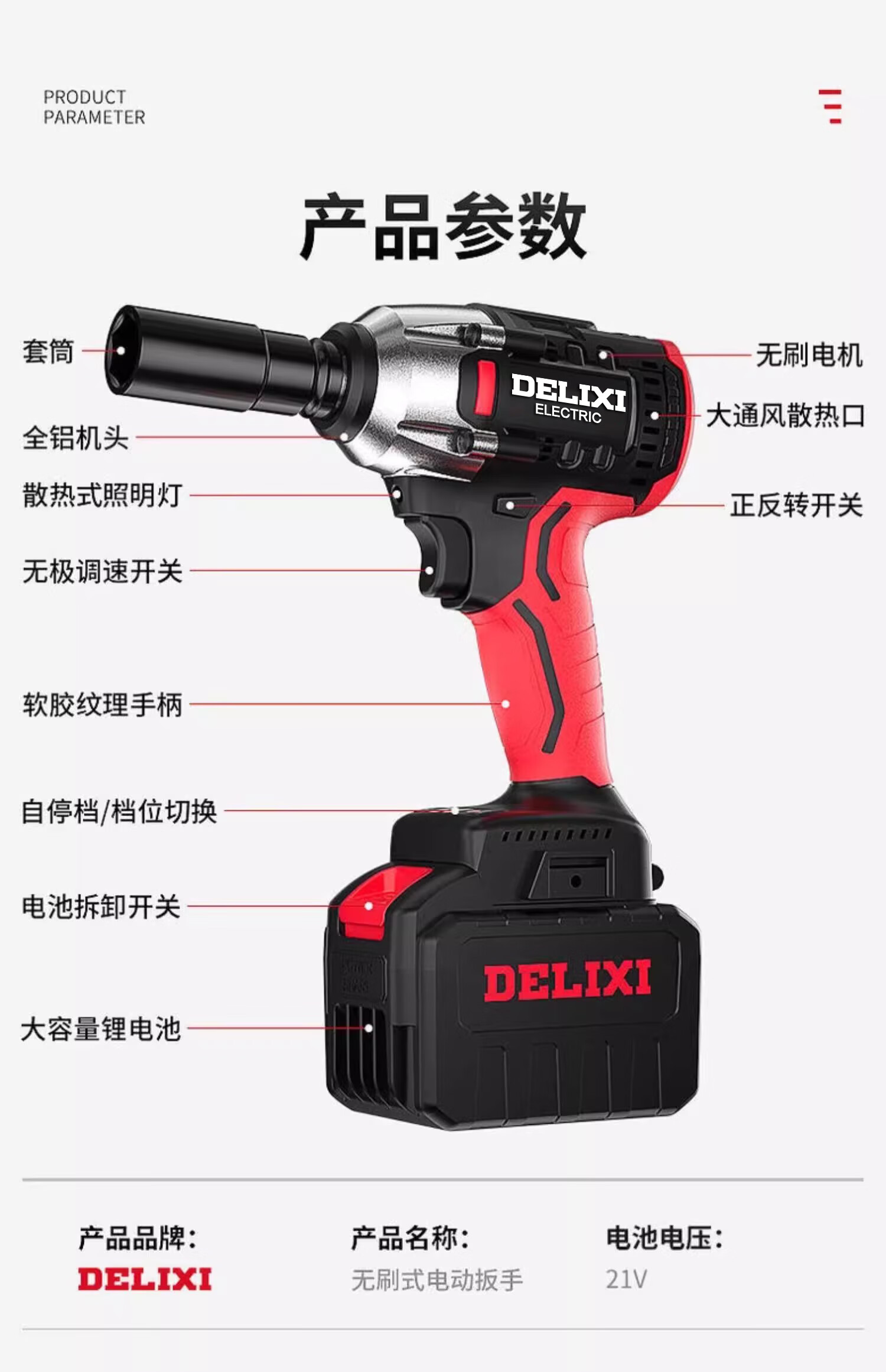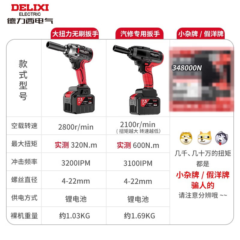 • 商品名称:德力西电气无刷锂电动扳手电动风炮汽修维修套装电动工具扳手冲击扳手大扭矩 DLX-BS03/台